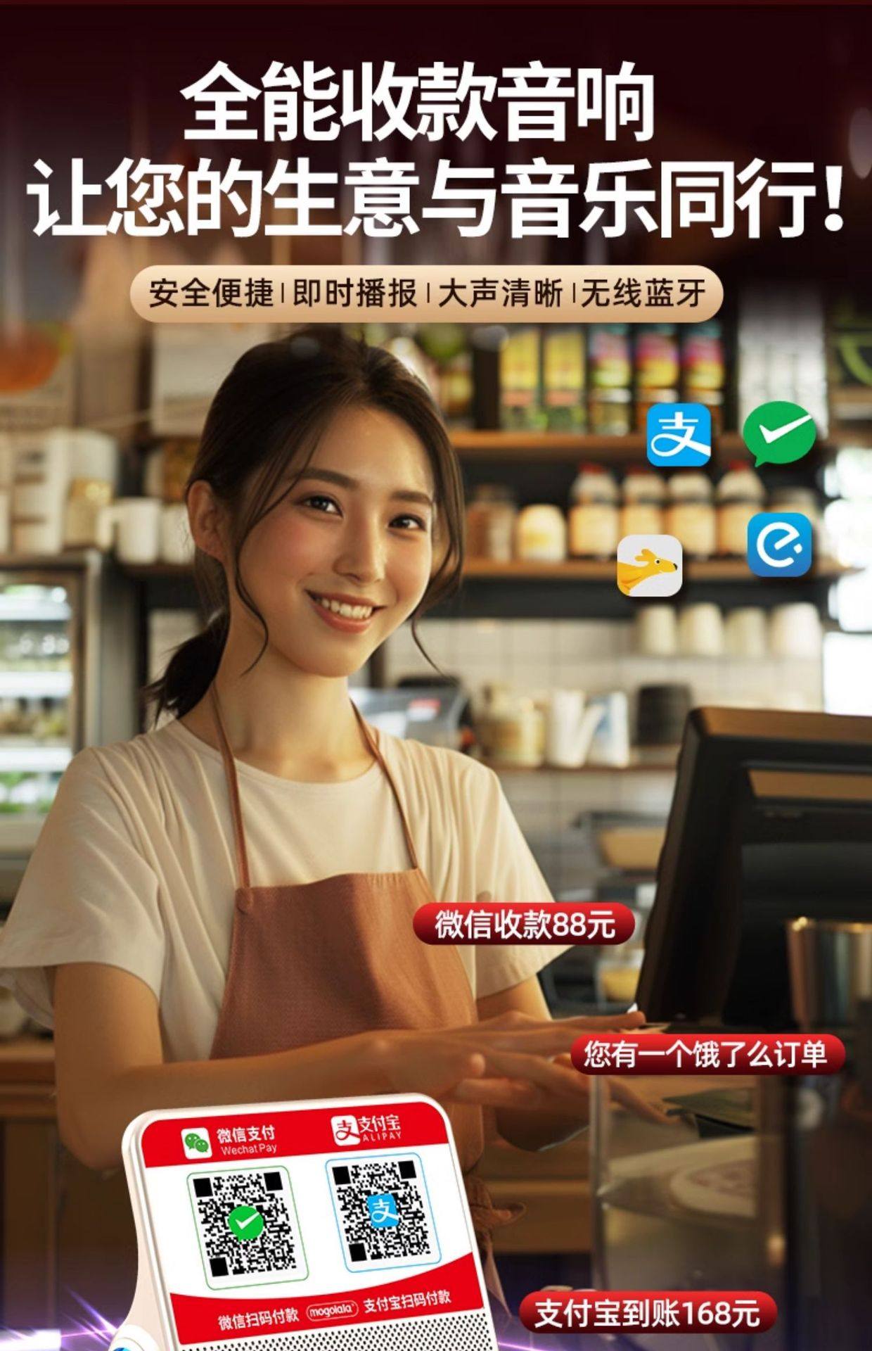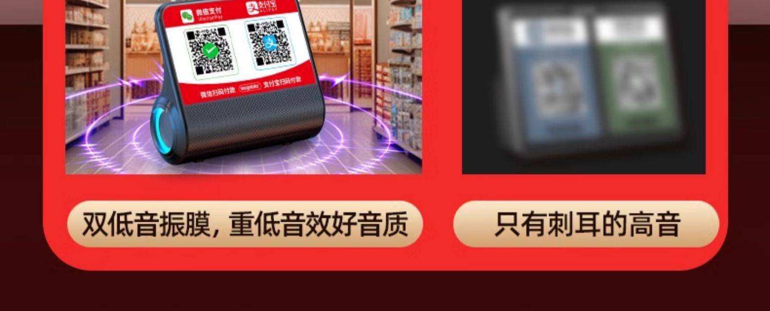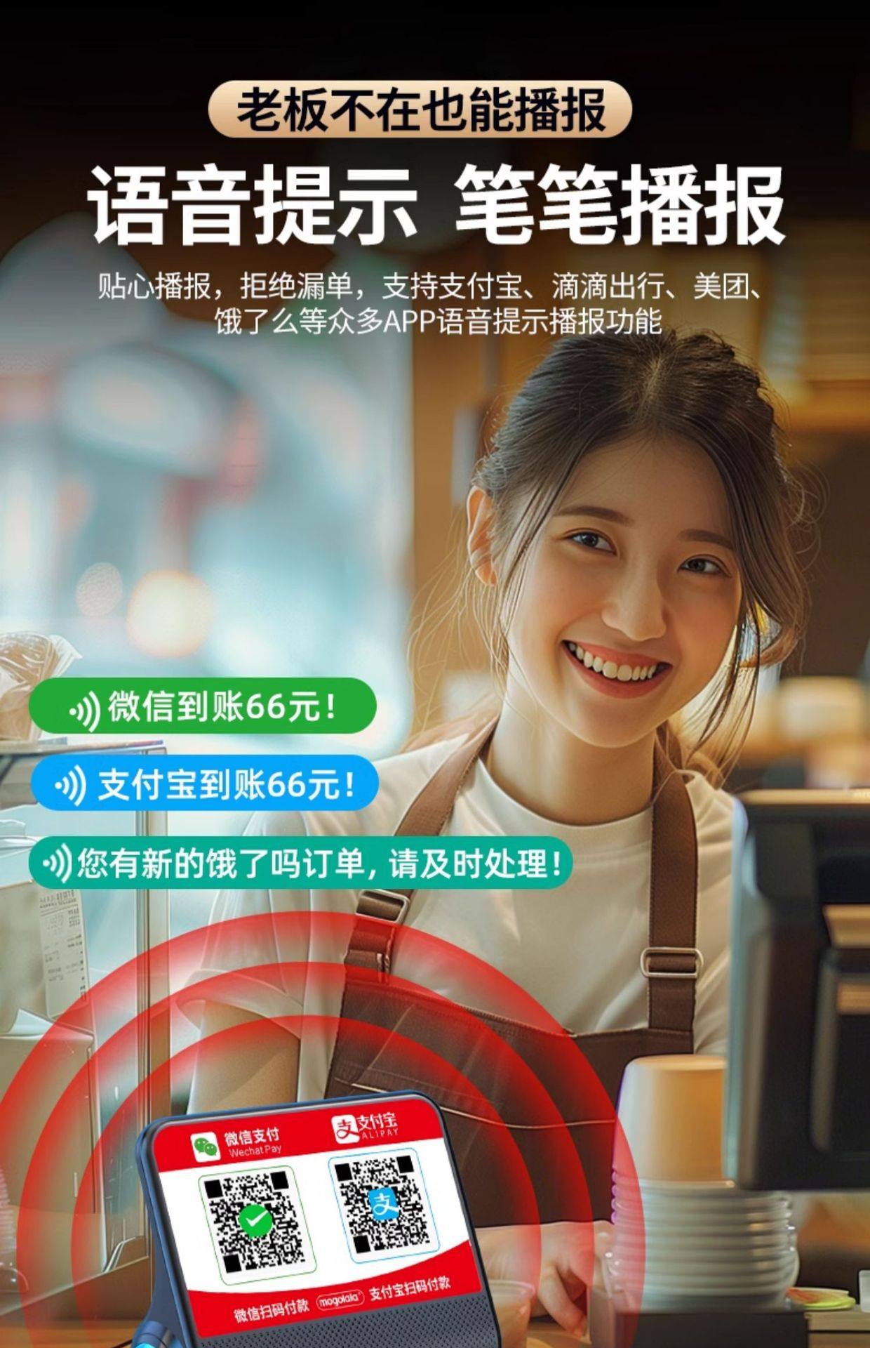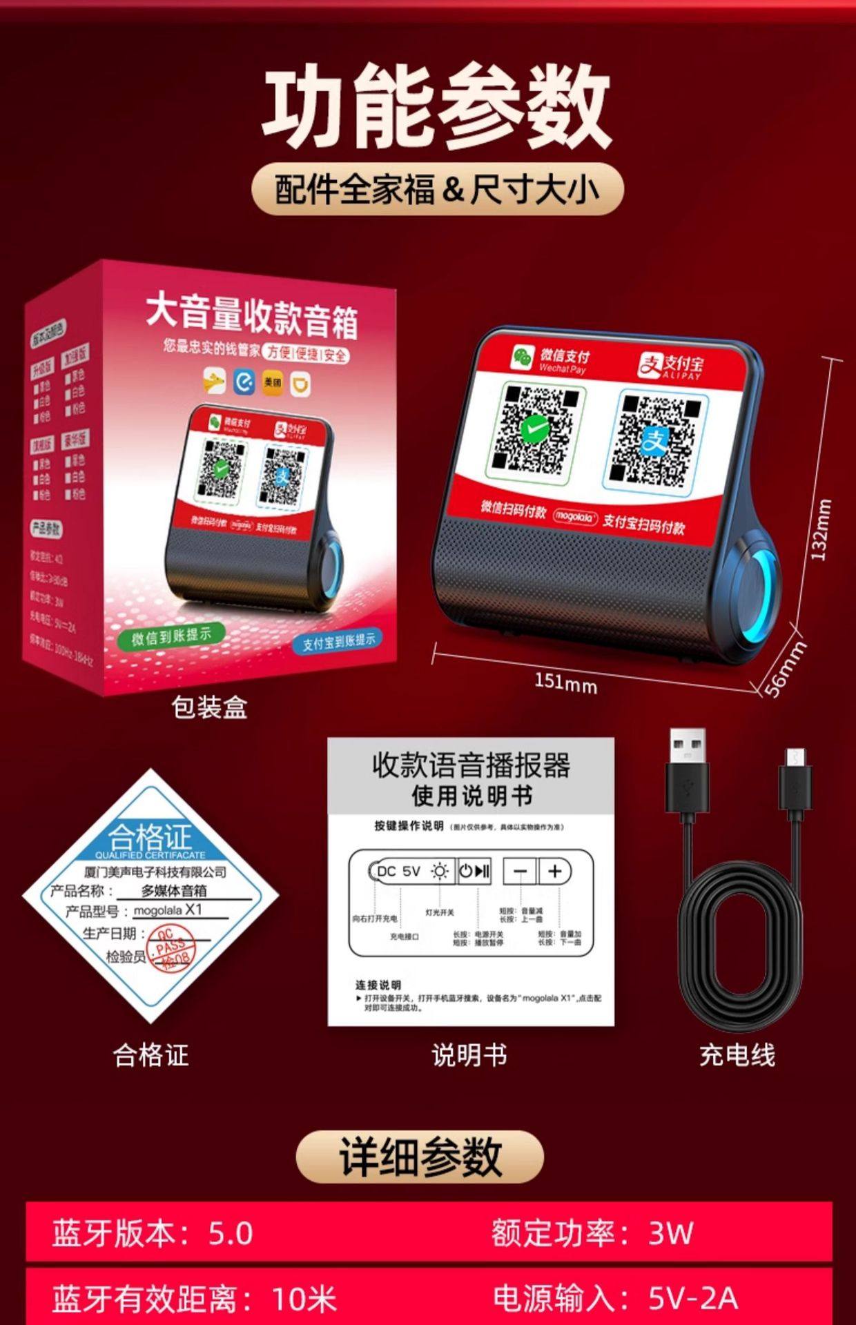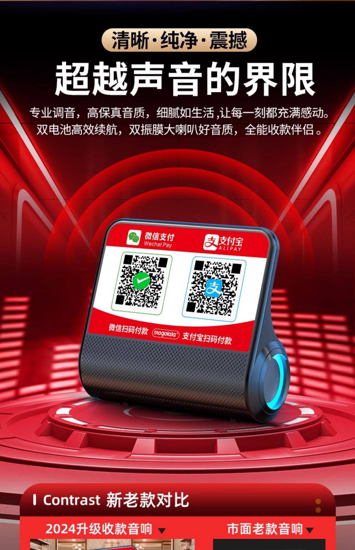 Payment Speaker with Real Voice Prompts, Payment Collection Announcer, High Volume Bluetooth Speaker, Dual-Diaphragm Subwoofer