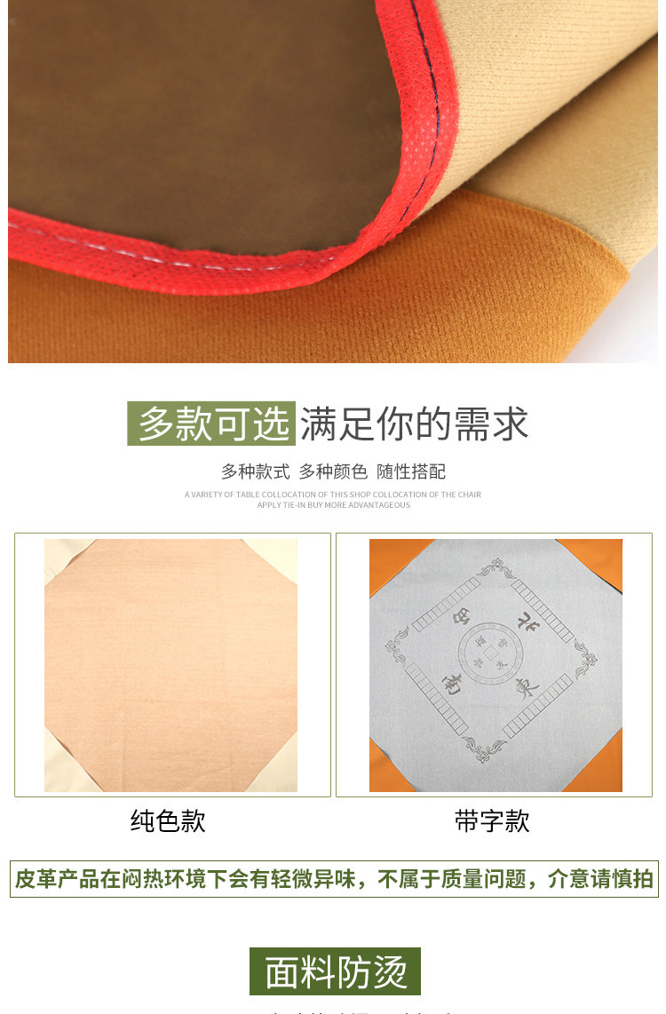 Waterproof and Soundproof Leather Mahjong Tablecloth Hand-Rubbed Household Square Mahjong Mat with Pocket Large Rice—. Ginger Tea