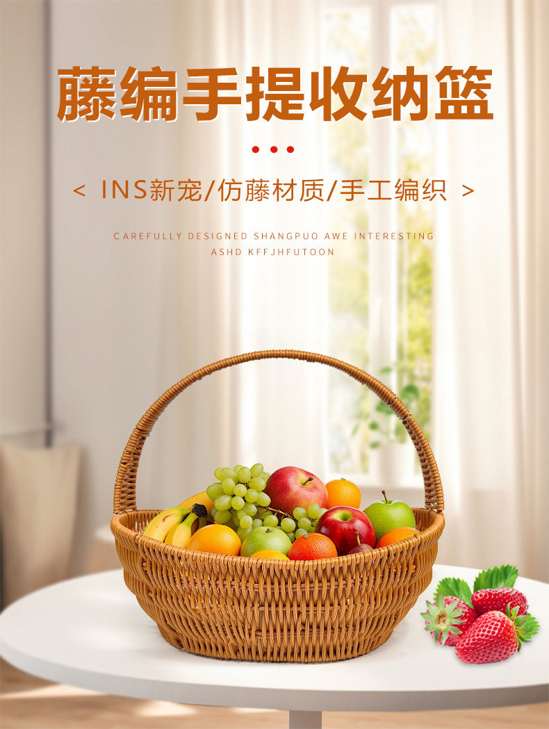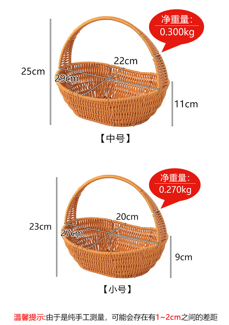 Plastic Rattan Basket, Portable Flower Basket, Handicraft Shopping Basket, Grocery Shopping Gift Storage, Woven Wedding New Style