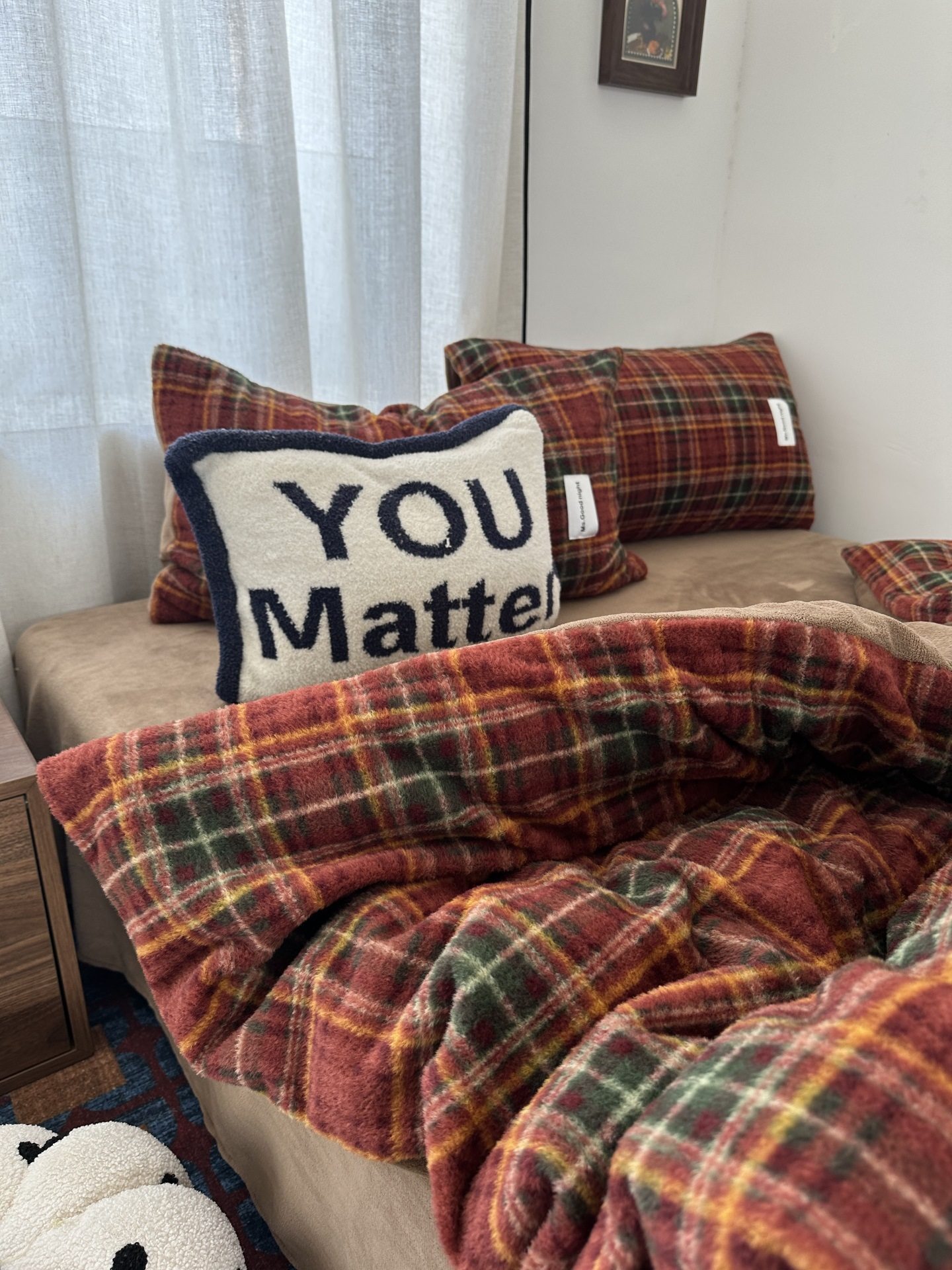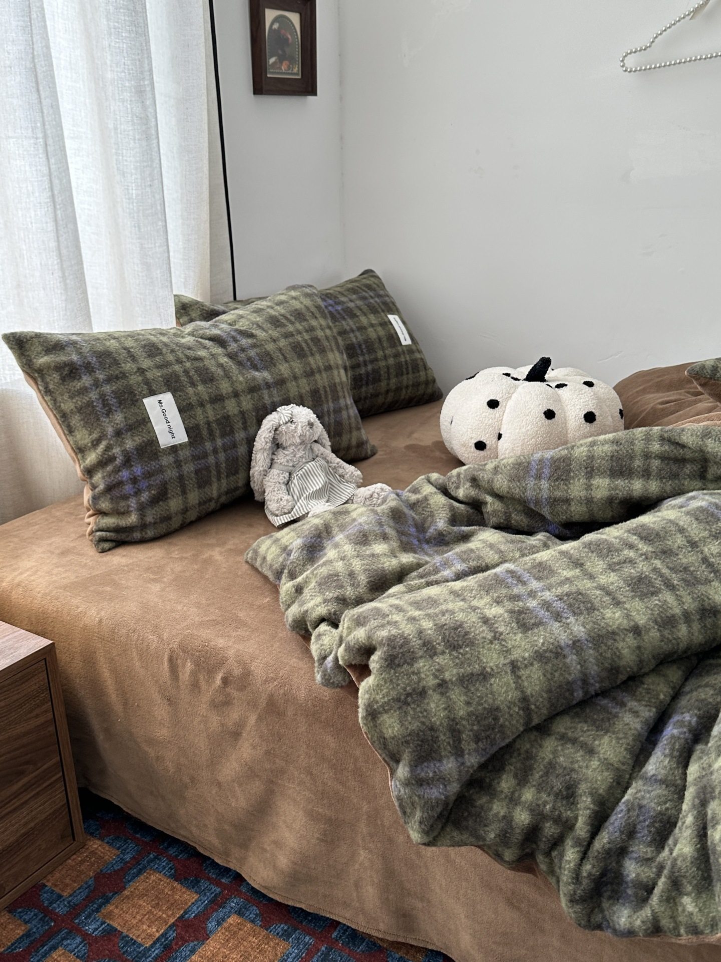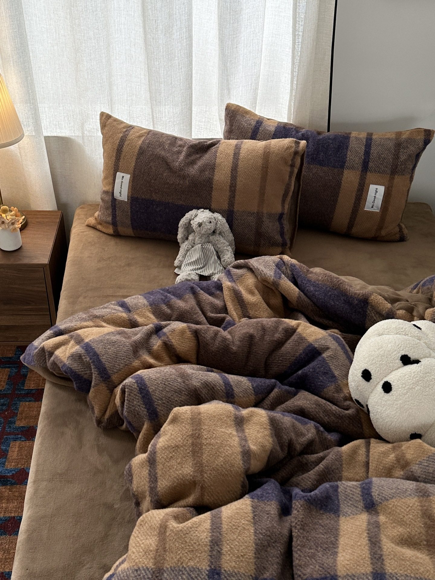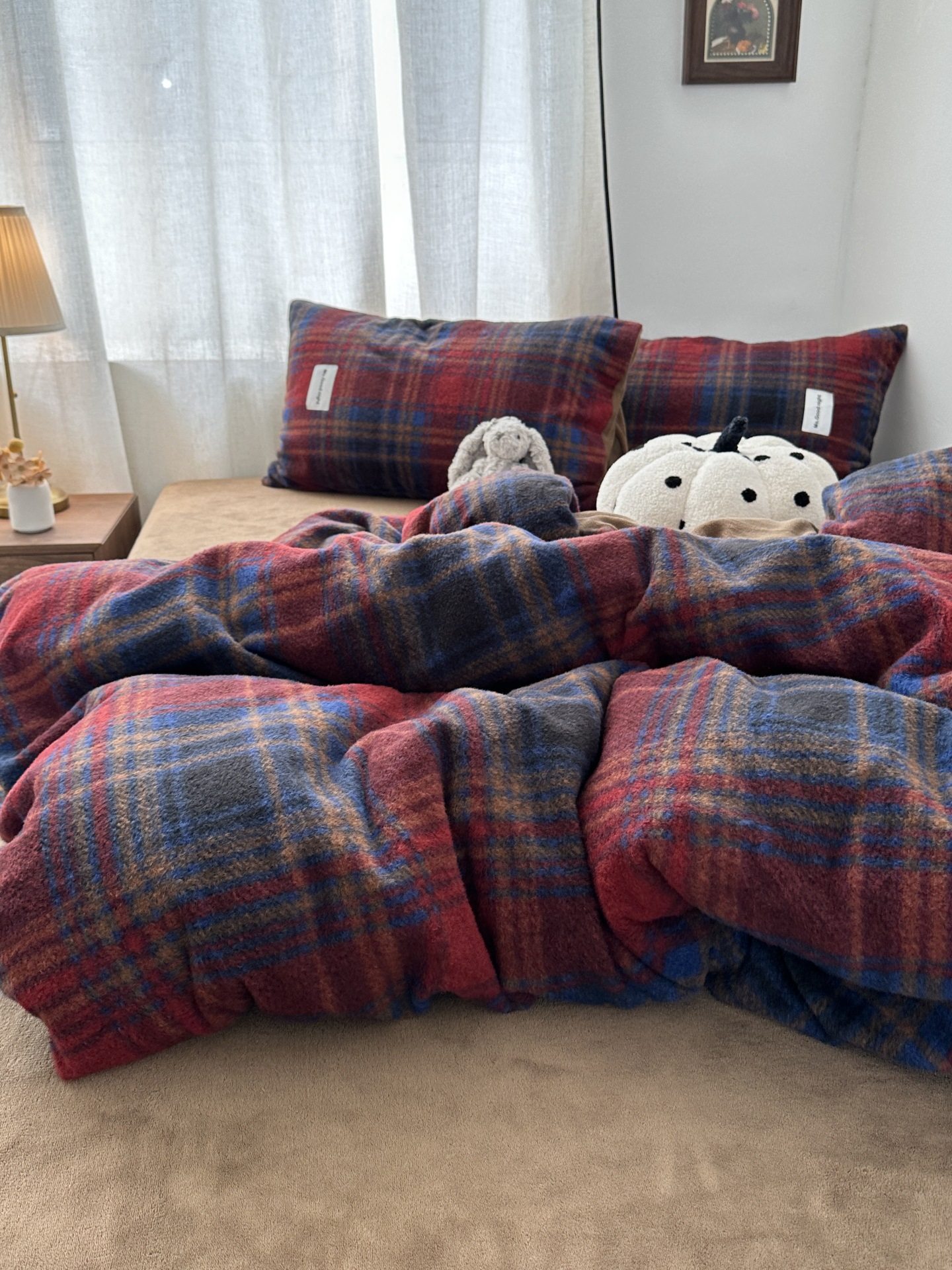 British Style Ins Simple Plaid Imitation Cashmere Warm Milk Velvet Four-Piece Set Winter Coral Velvet Three-Piece Fitted Sheet Set 4