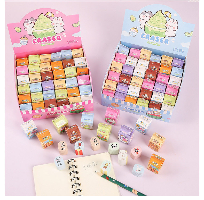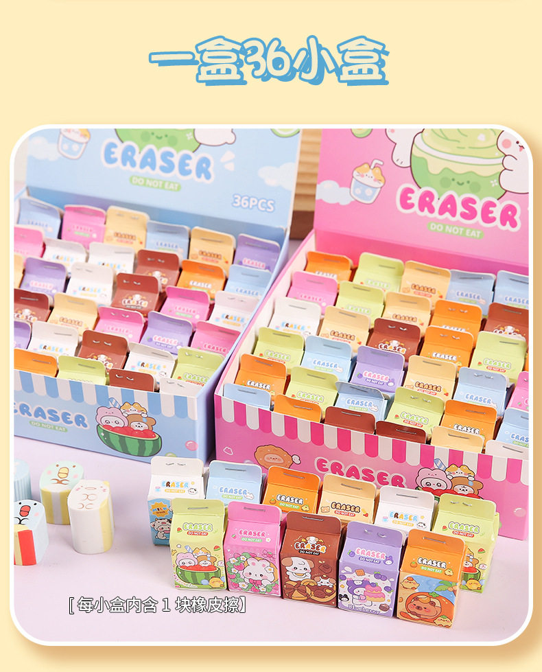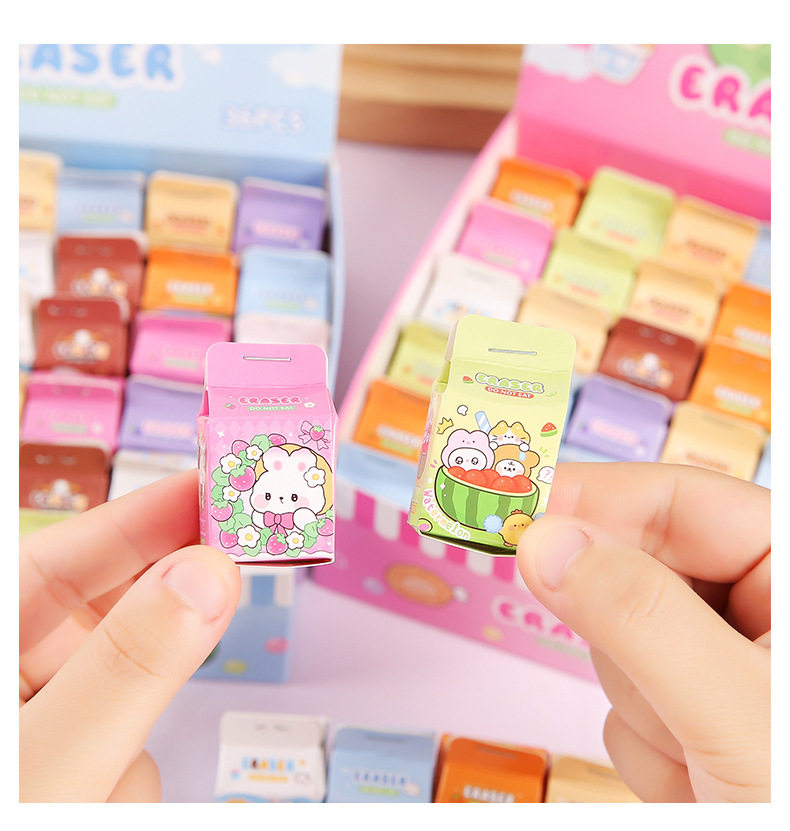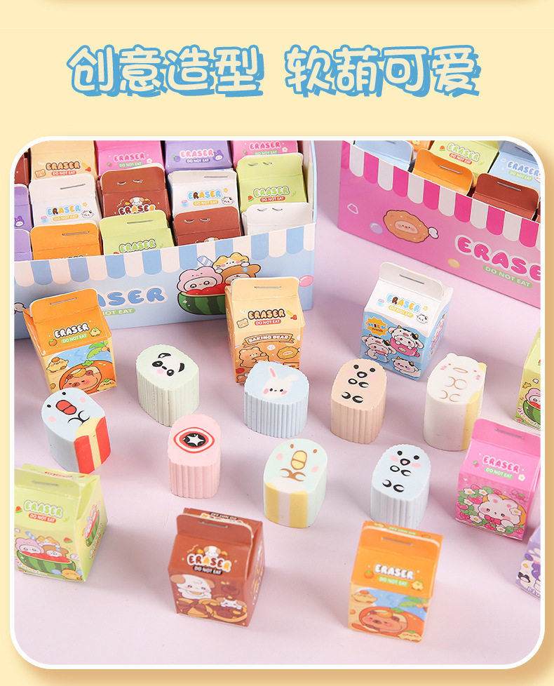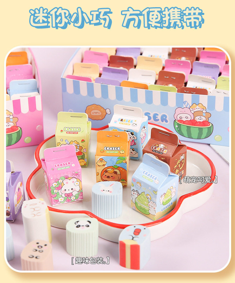 Simulated Milk Carton Children's Cartoon Blind Box Eraser High-Looking Student Wipes Clean Without Leaving Traces Eraser Wholesale