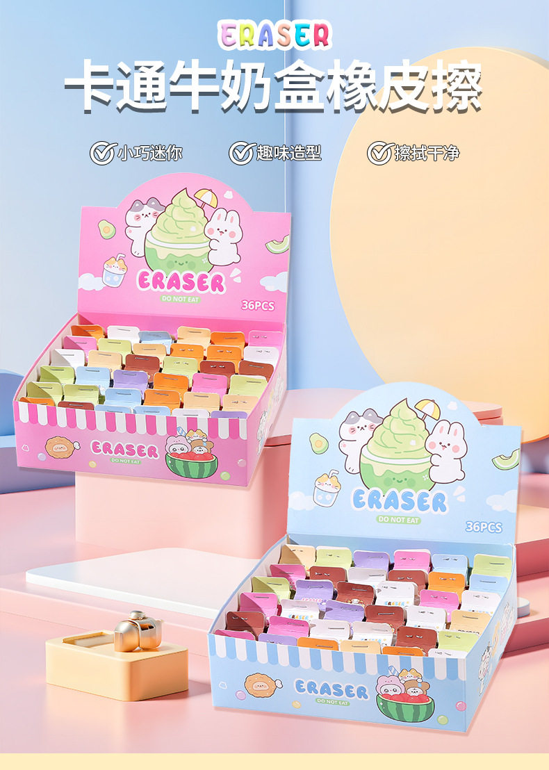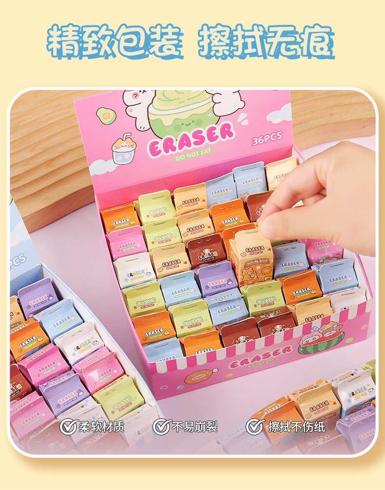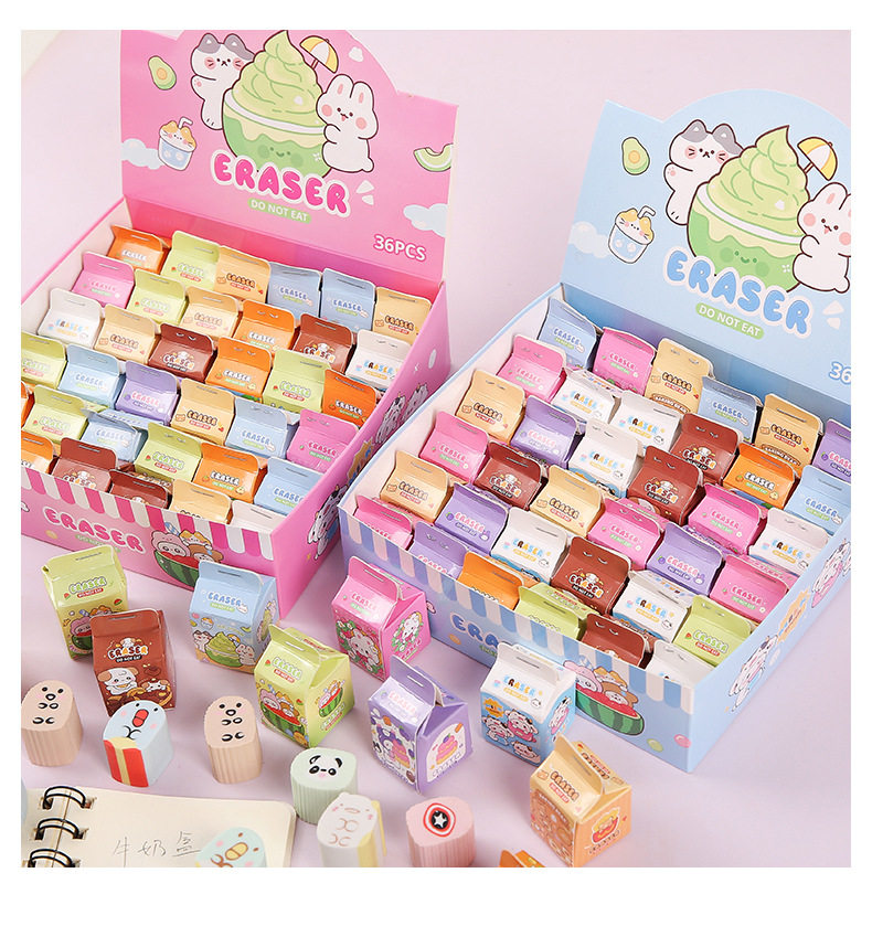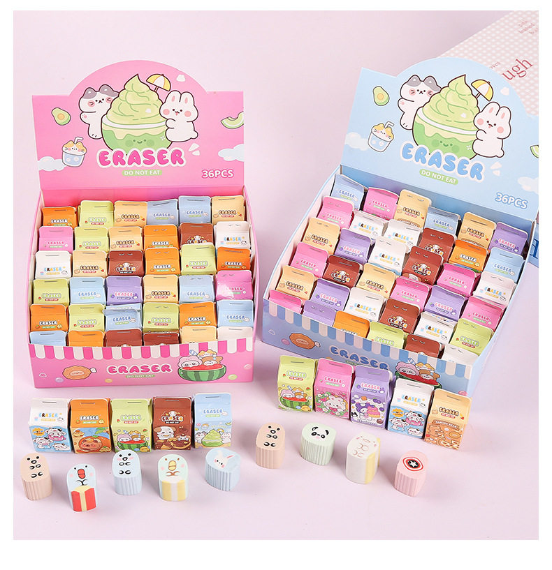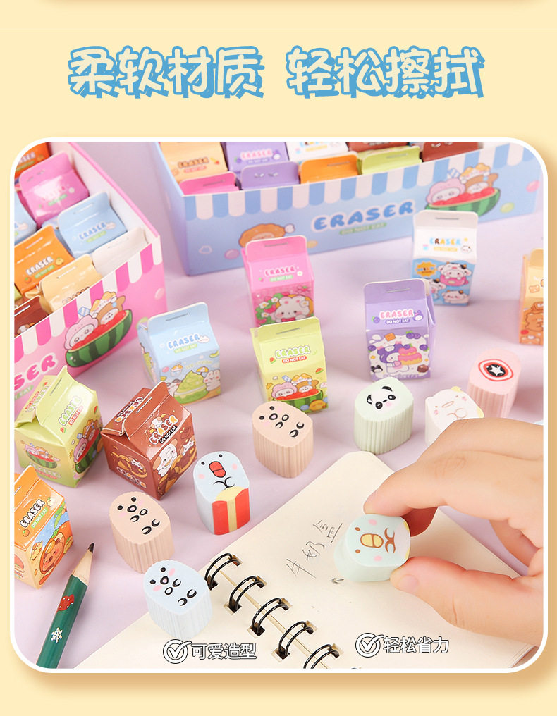 Simulated Milk Carton Children's Cartoon Blind Box Eraser High-Looking Student Wipes Clean Without Leaving Traces Eraser Wholesale
