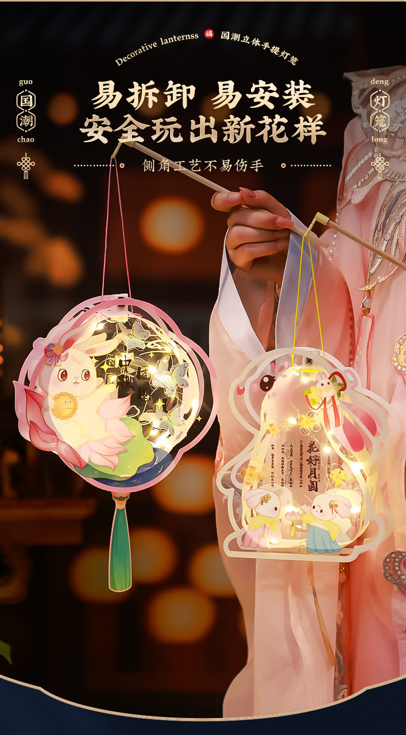 | Color | ăchang'e flying to the moonăjade rabbit lantern,ăhappy mid-autumn festivalăjade rabbit lantern,ămid-autumn reunionăjade rabbit lantern,ăbeautiful flowers and full moonăjade rabbit lantern,[jade rabbit mid-autumn festival] jade rabbit lantern,[blue butterfly] calligraphy lantern,[pink butterfly] calligraphy lantern,[red butterfly] calligraphy lantern,[purple butterfly] calligraphy lantern,ăfloweryăcalligraphy lantern,ăsplendid mountains and riversăcalligraphy lantern,ăfull moon mid-autumn festivalăjade rabbit lantern |
