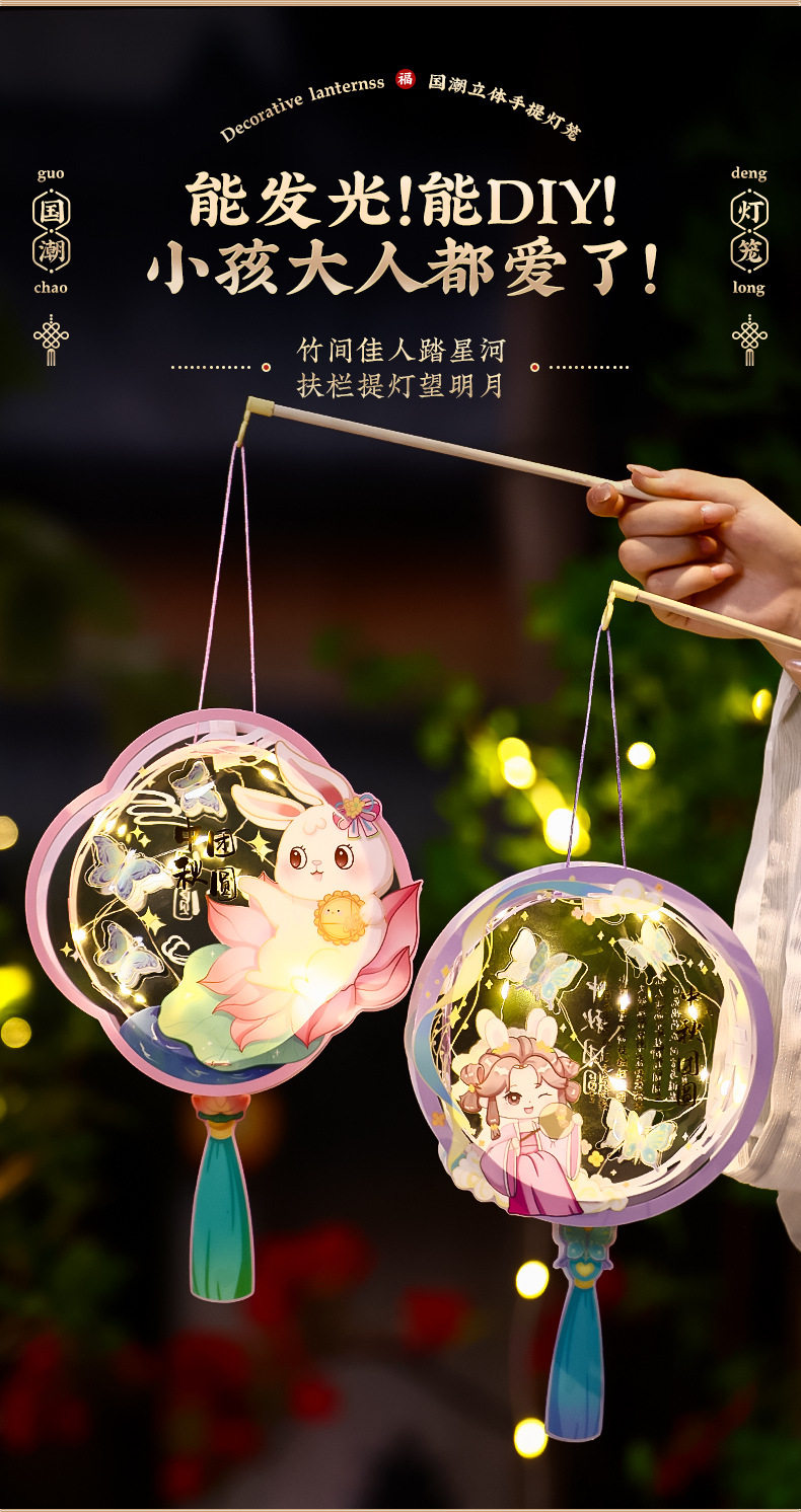 Mid-Autumn Festival Lantern Rabbit Lantern Handmade DIY Material Package Ancient Style Han Dynasty Kidsren's Satchel Luminous Palace Lantern Hanging Decoration