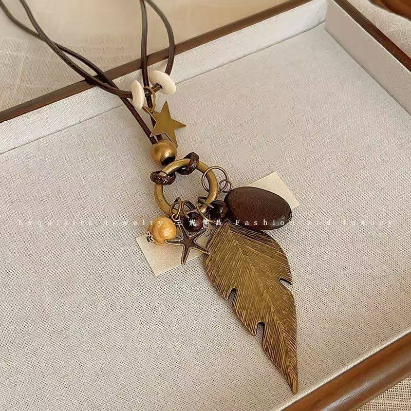 New Chinese Style Retro Long Sweater Chain Zen Feather Necklace Women's 2024 New Ethnic Style Stacking Accessories Autumn