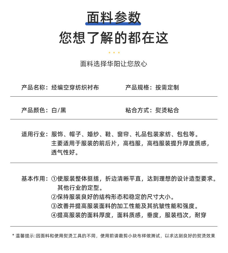 | Color | Warp knitted interlining |