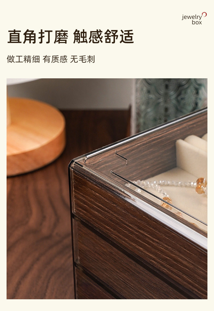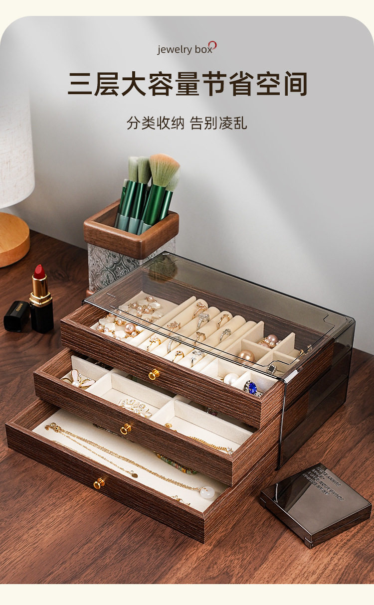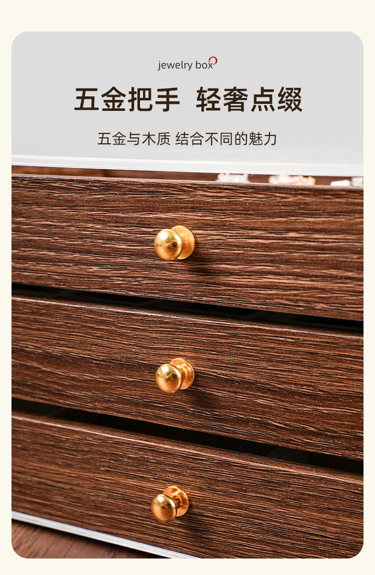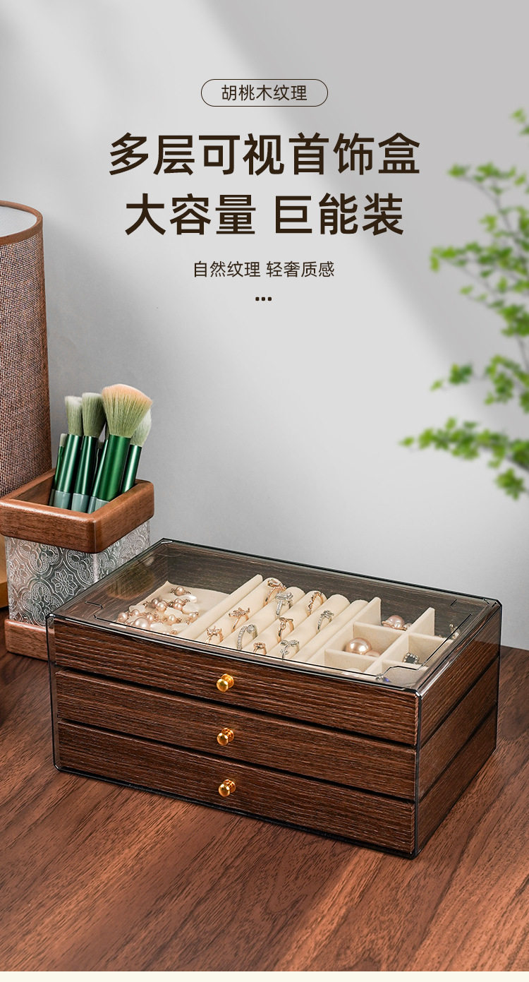 Walnut Wood Grain Jewelry Box for Rings, Necklaces, Bracelets, Earrings, Studs, and Accessories, Five-Layer Large Storage Box