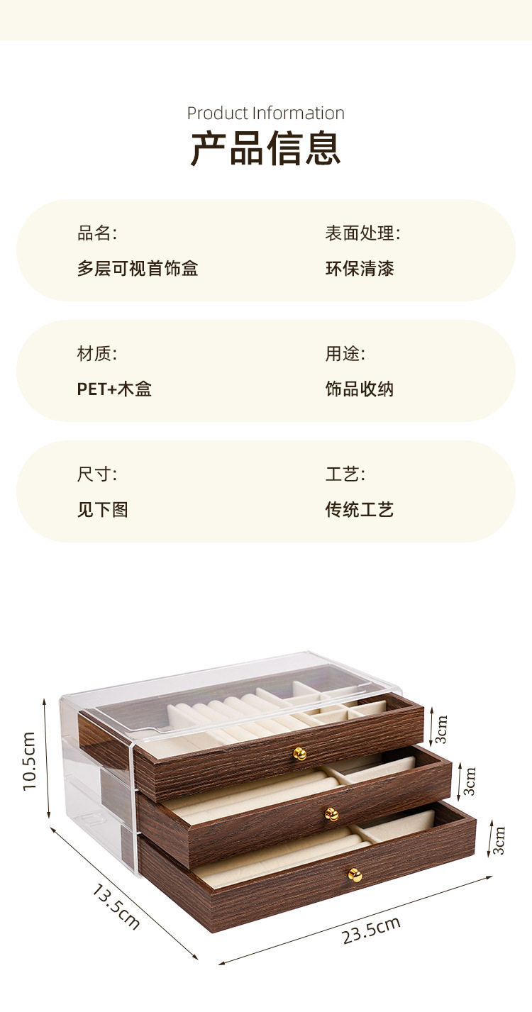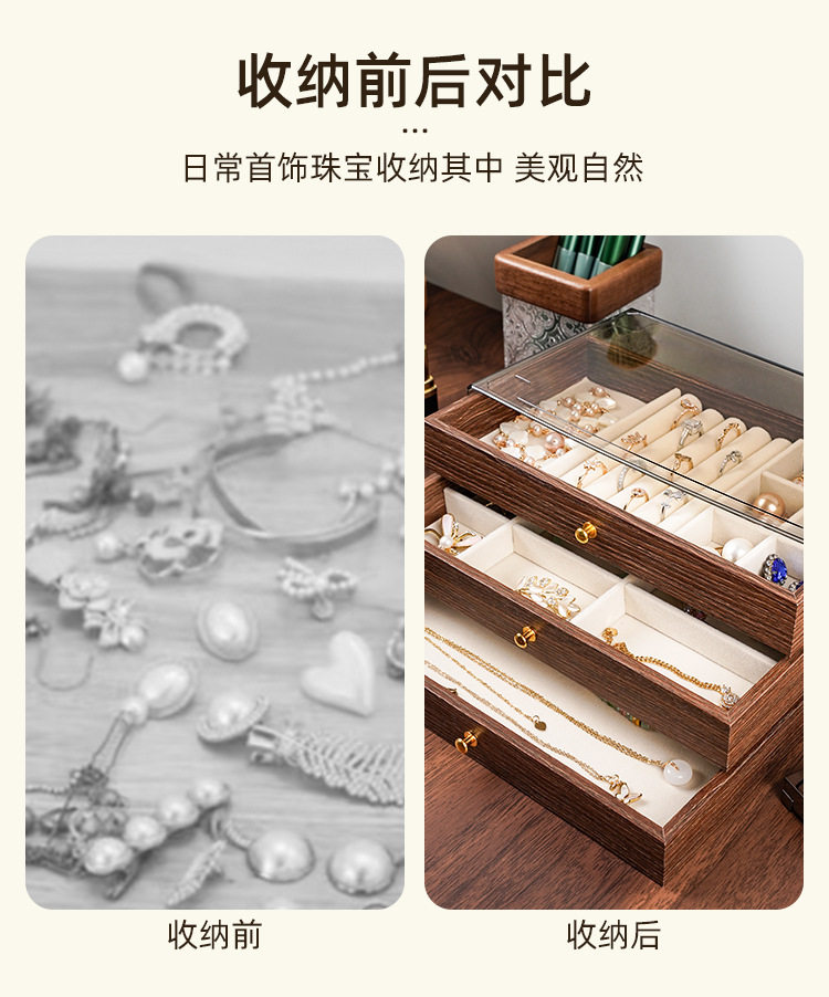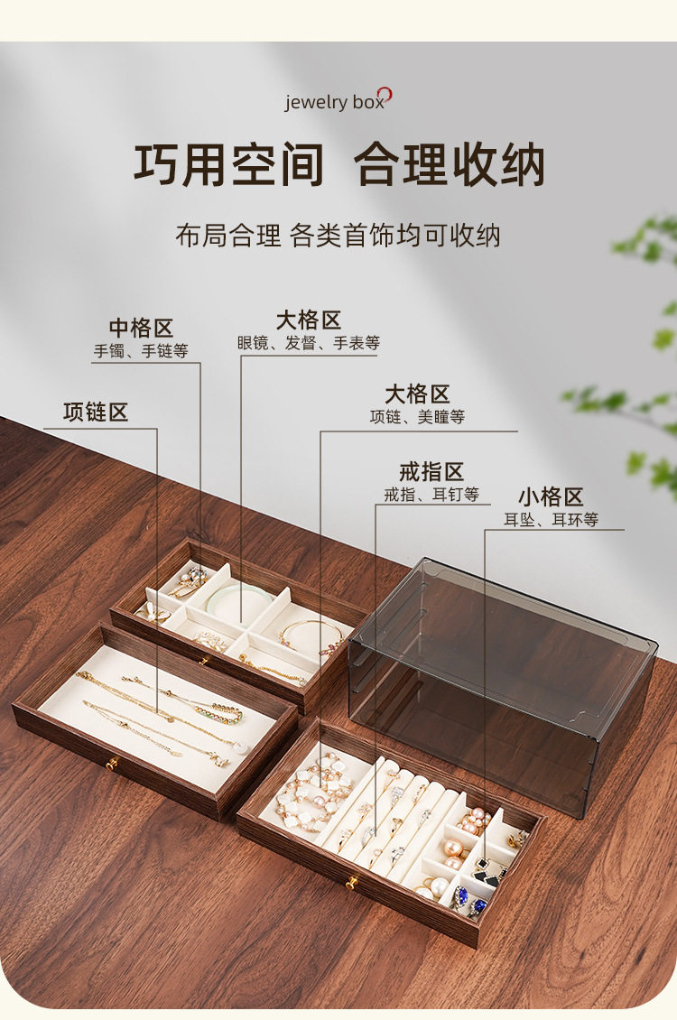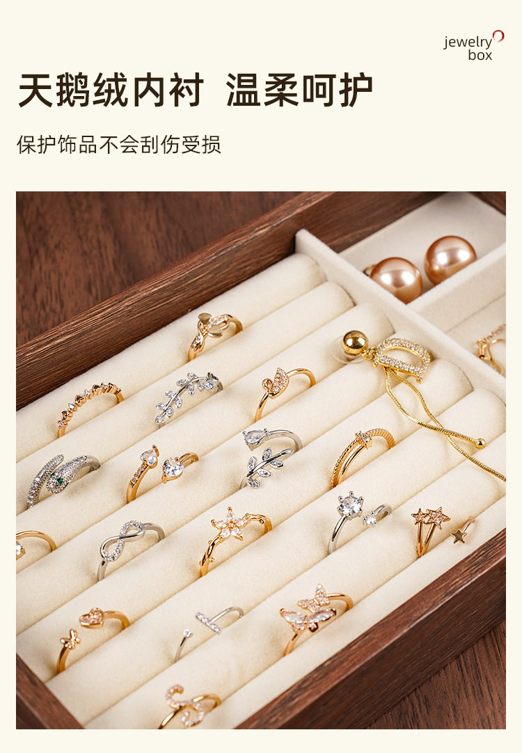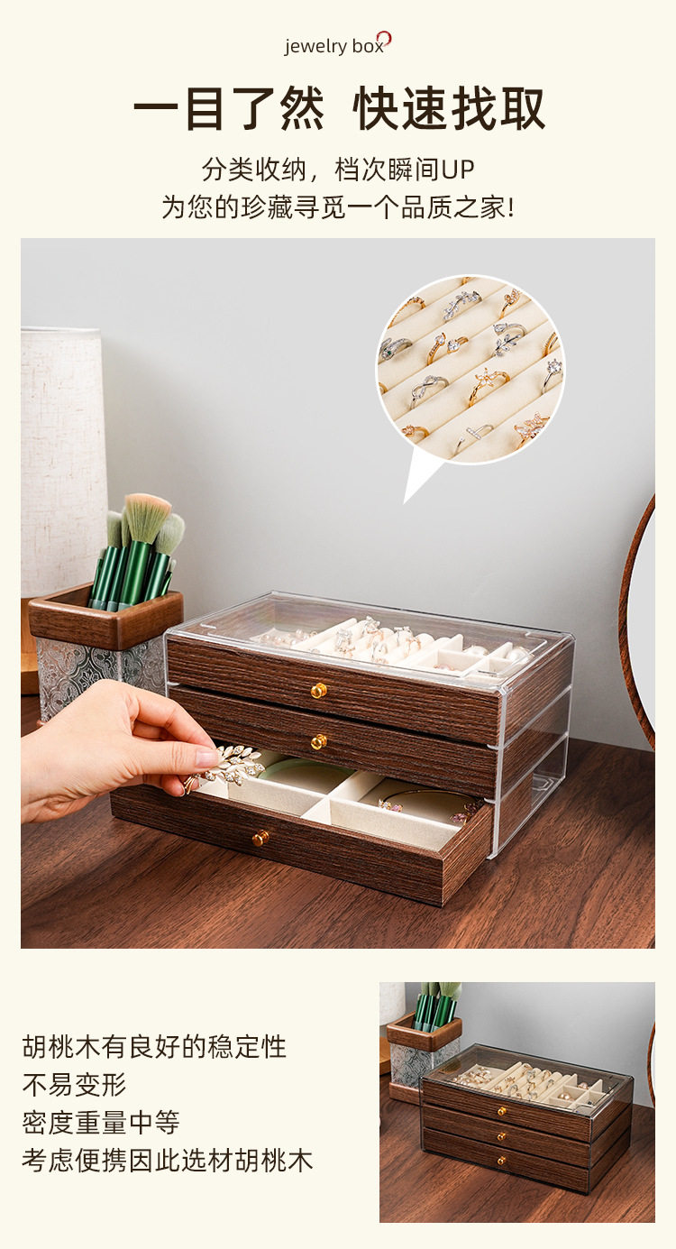Walnut Wood Grain Jewelry Box for Rings, Necklaces, Bracelets, Earrings, Studs, and Accessories, Five-Layer Large Storage Box