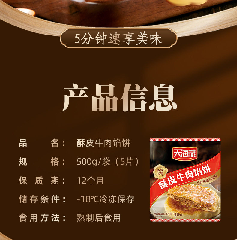 [20 Pieces] Tianhai Xizang Puff Pastry Beef Pie 500G/Pack Golden Crispy Breakfast Semi-Finished Products for Other Household Use