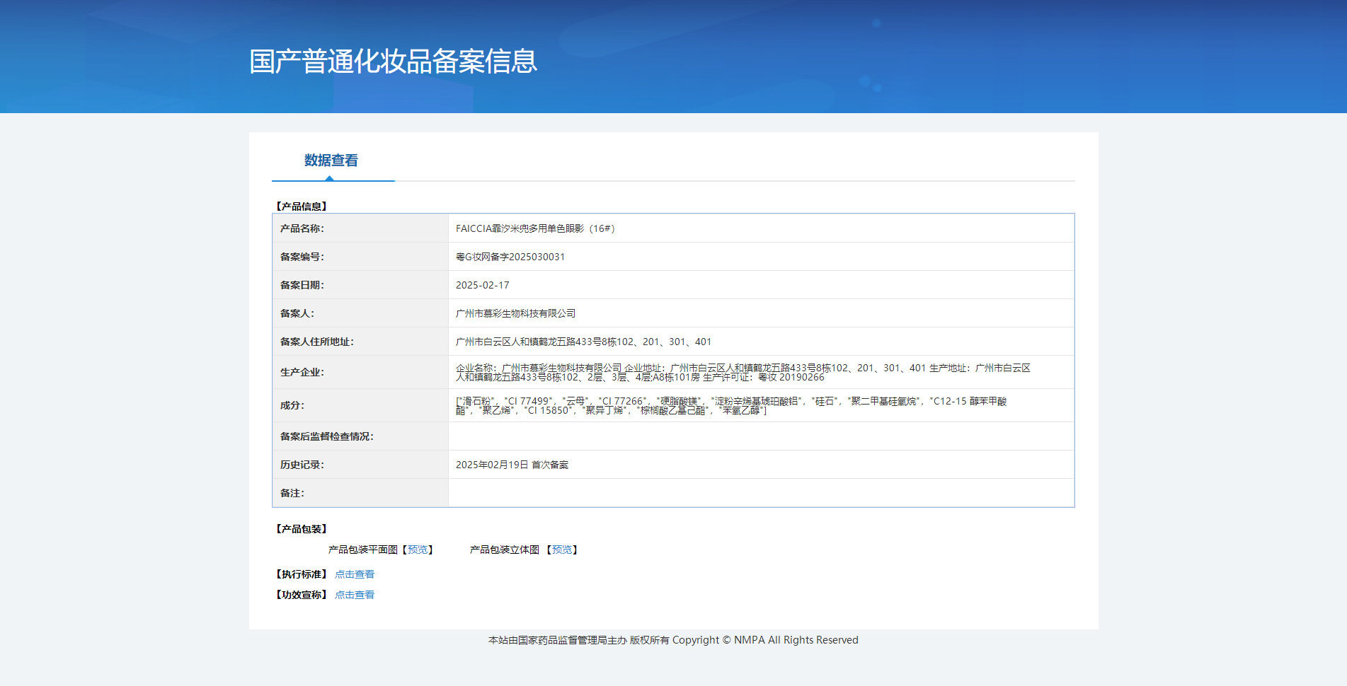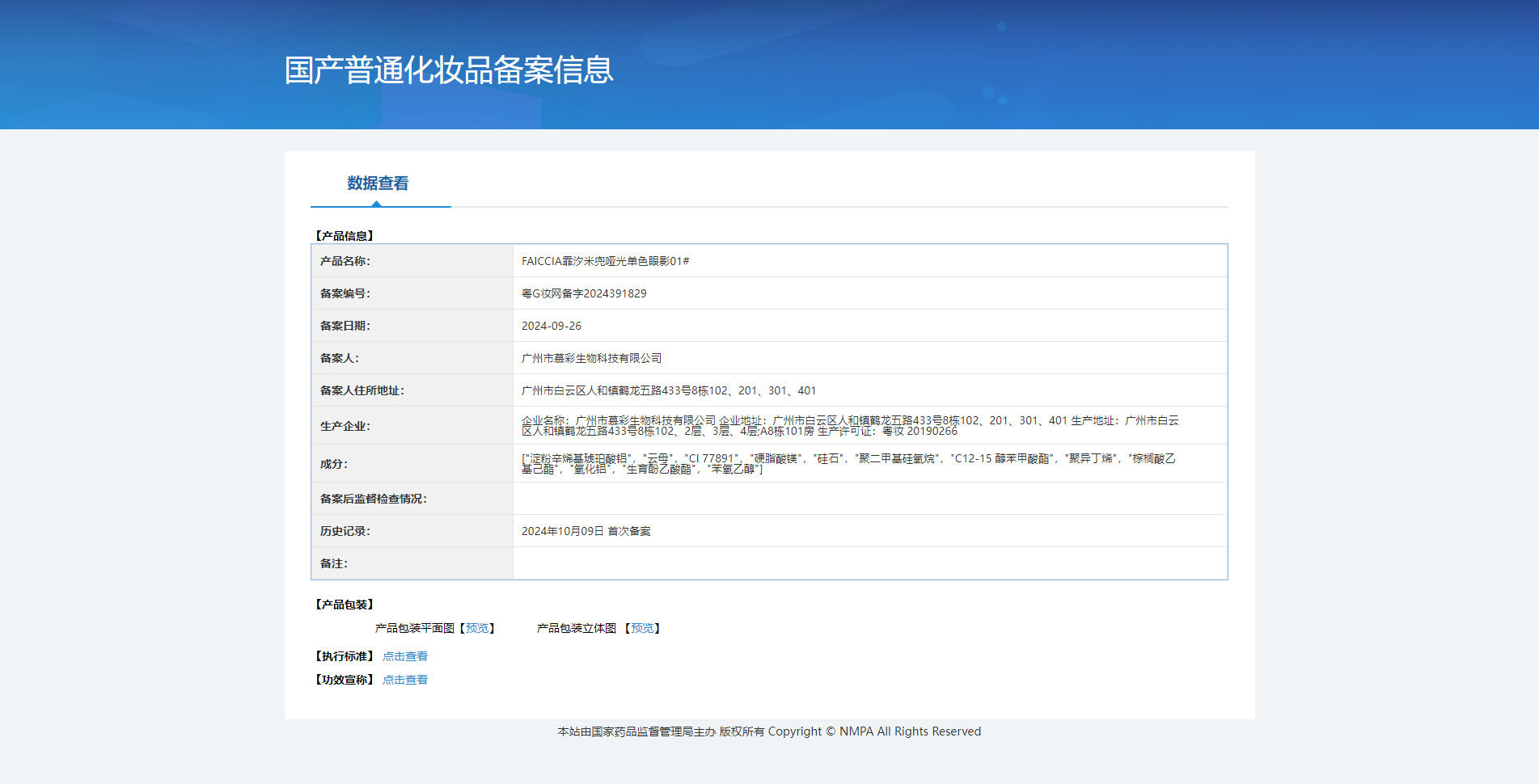 | Non-special cosmetics registration certificate number | Guangdong g makeup network preparation number 2024391829 |