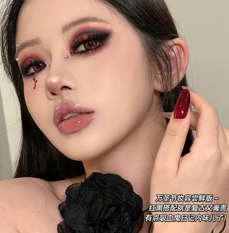 Dark Tipsy Makeup~ Gothic Smoky Palette Red and Black Punk Smoky Makeup Eye Shadow American Sexy Small Smoky Cut-Off