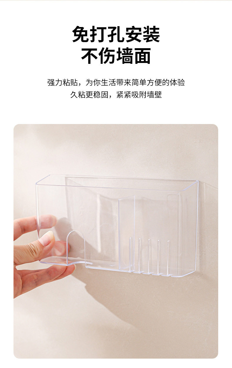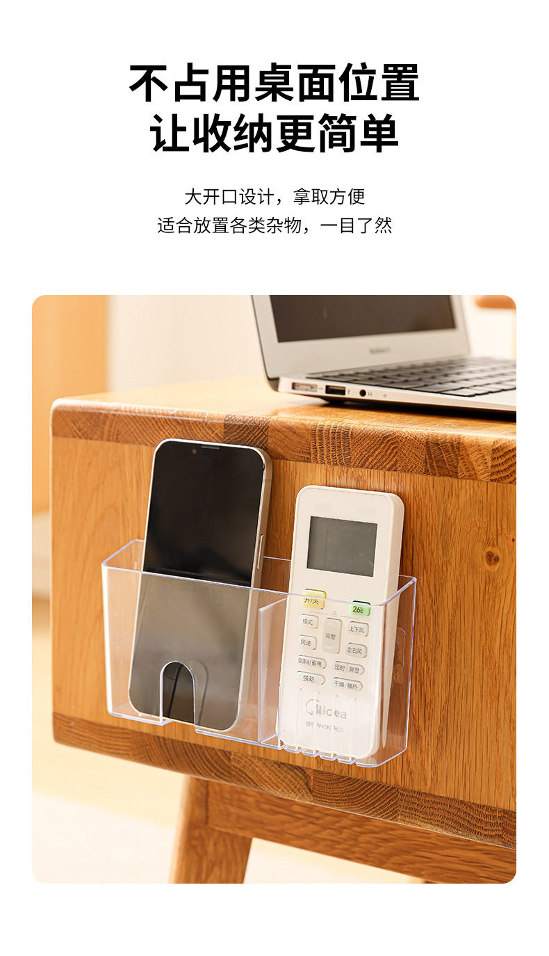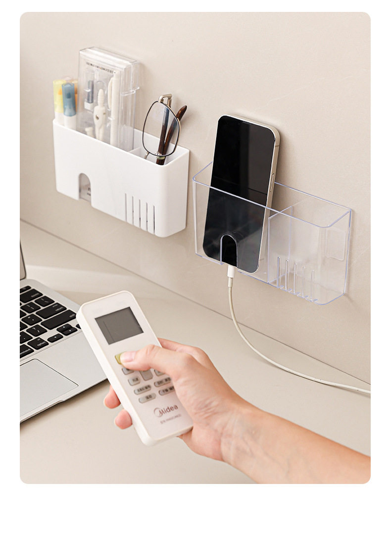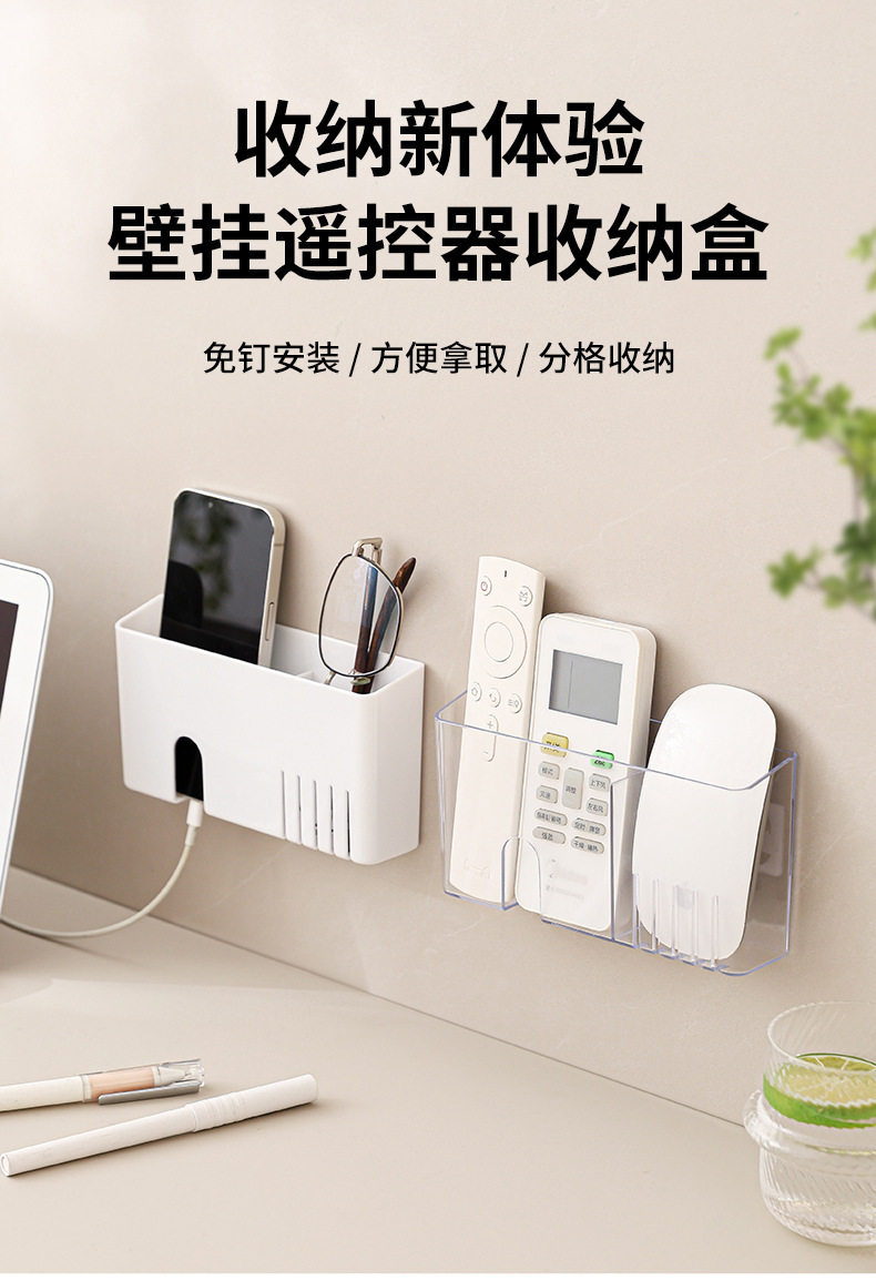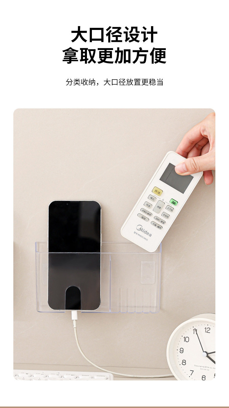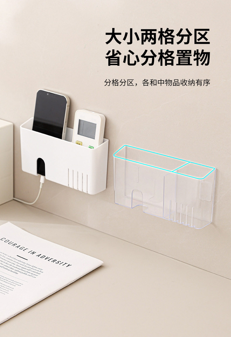 Remote Control Storage Box Wall-Mounted Double-Compartment Rechargeable Mobile Phone Holder Without Punching and Partitioned Transparent Bedside Storage Rack