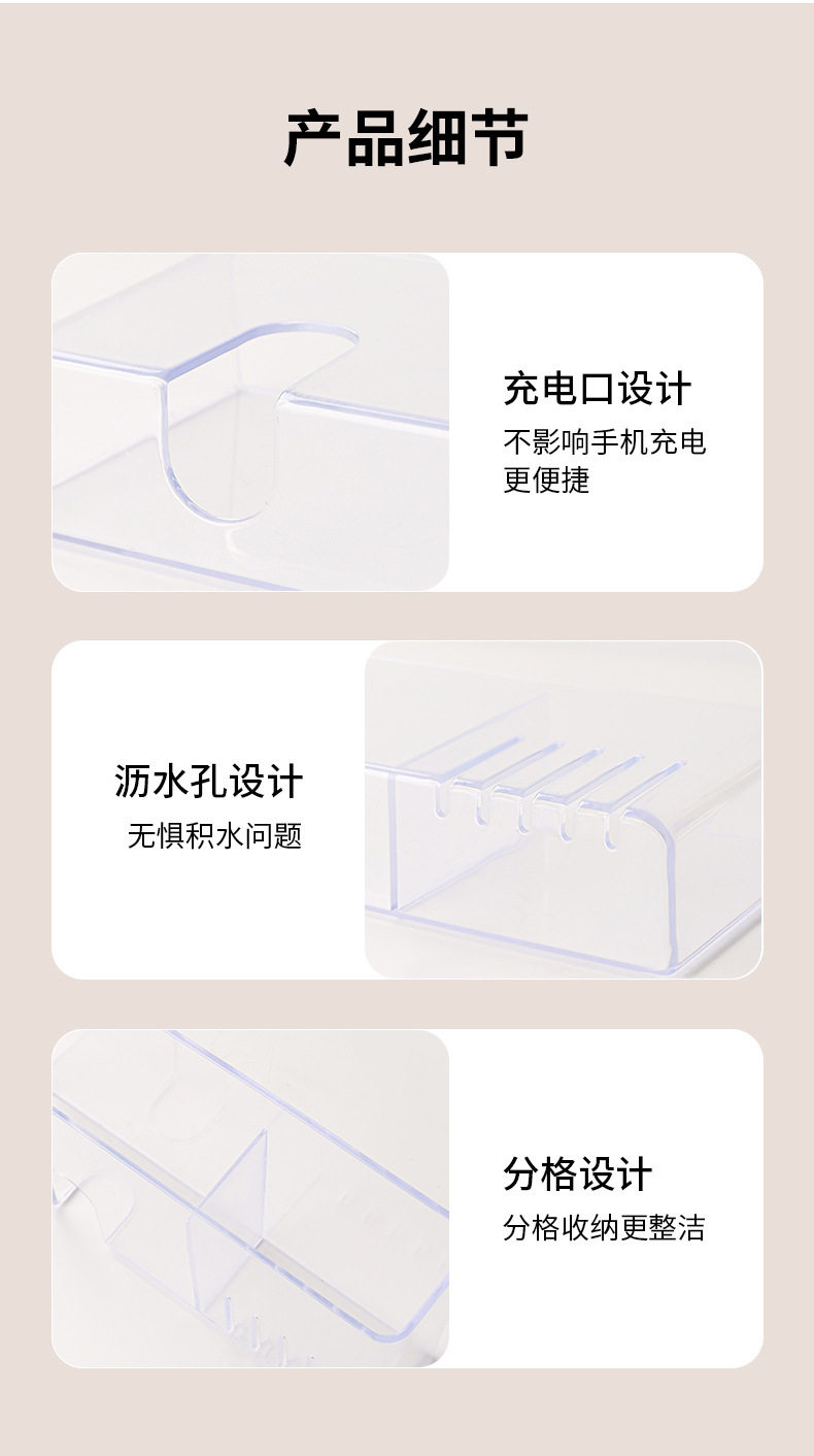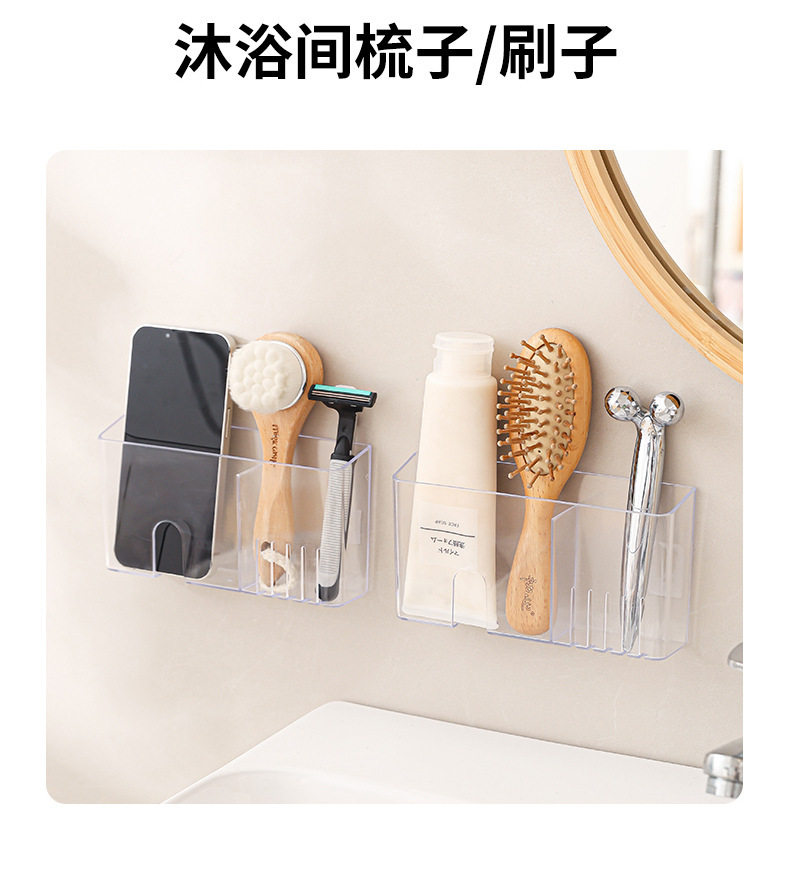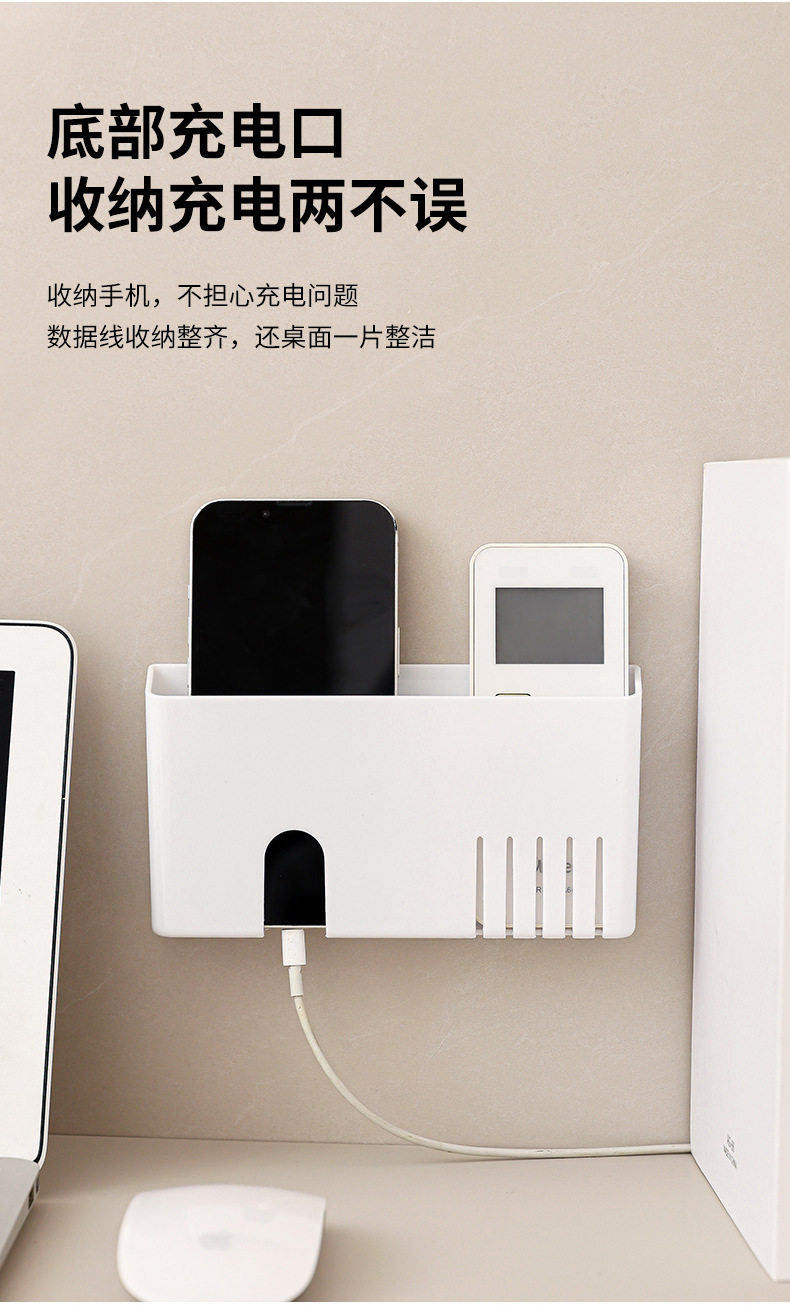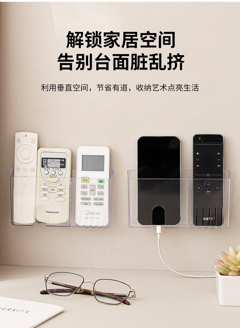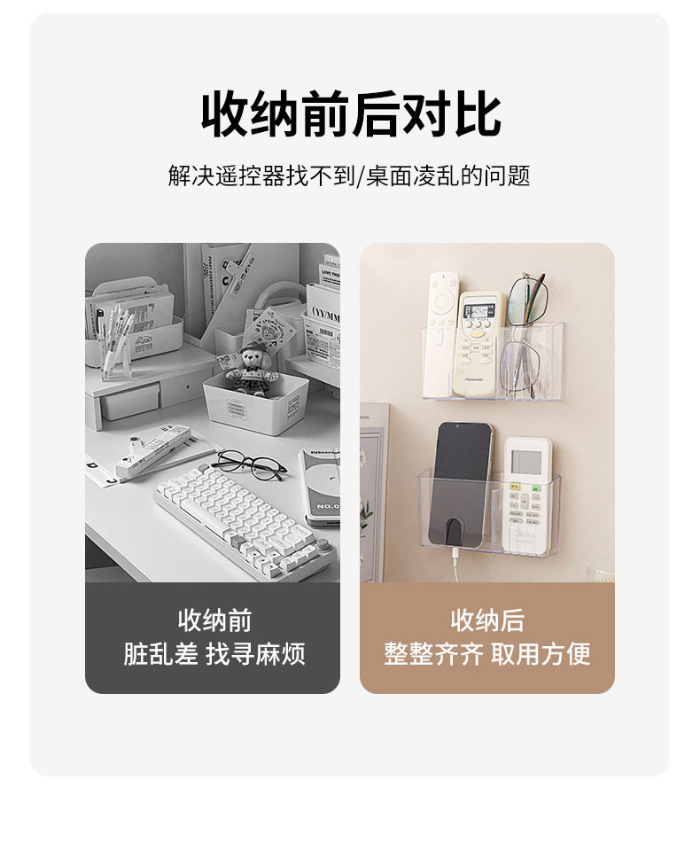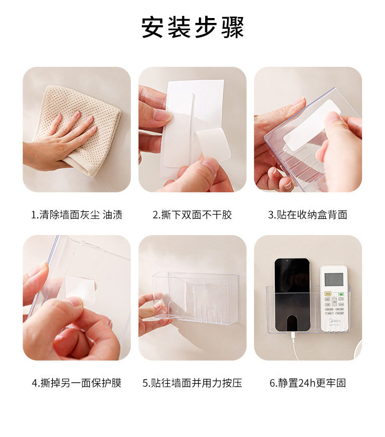 Remote Control Storage Box Wall-Mounted Double-Compartment Rechargeable Mobile Phone Holder Without Punching and Partitioned Transparent Bedside Storage Rack