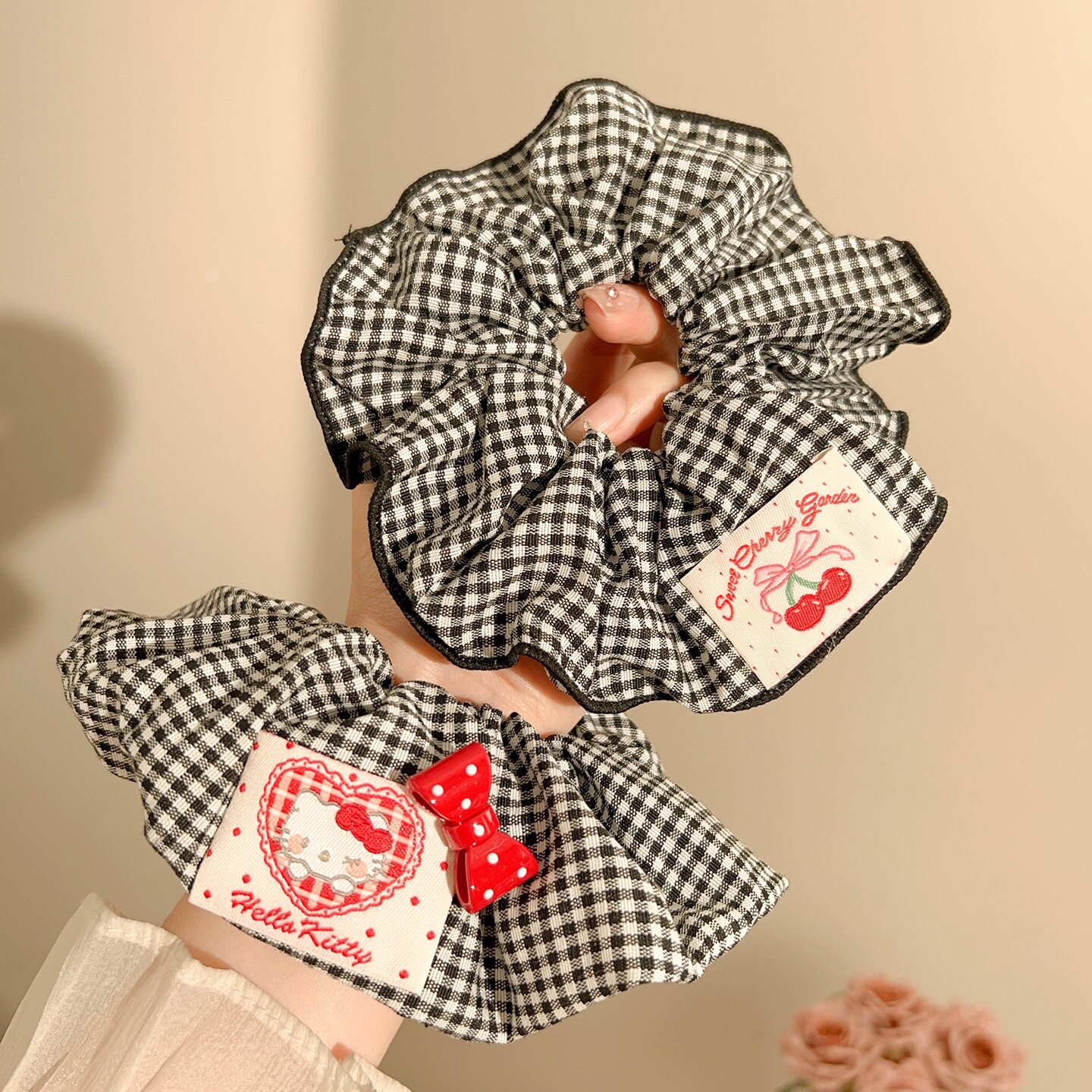 Extra Large Retro Red Plaid Hair Band for Women, Flower Rubber Band, Hair Ball, Hair Rope, Hair Rope, Hair Accessories
