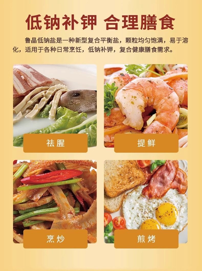 Lu Jing Low-Sodium Salt 400g Non-Iodized, Sodium-Reduced and Potassium-Added Healthy Fine Salt for Middle-Aged and Elderly People, Edible Salt, Seasoning, Whole Box Wholesale