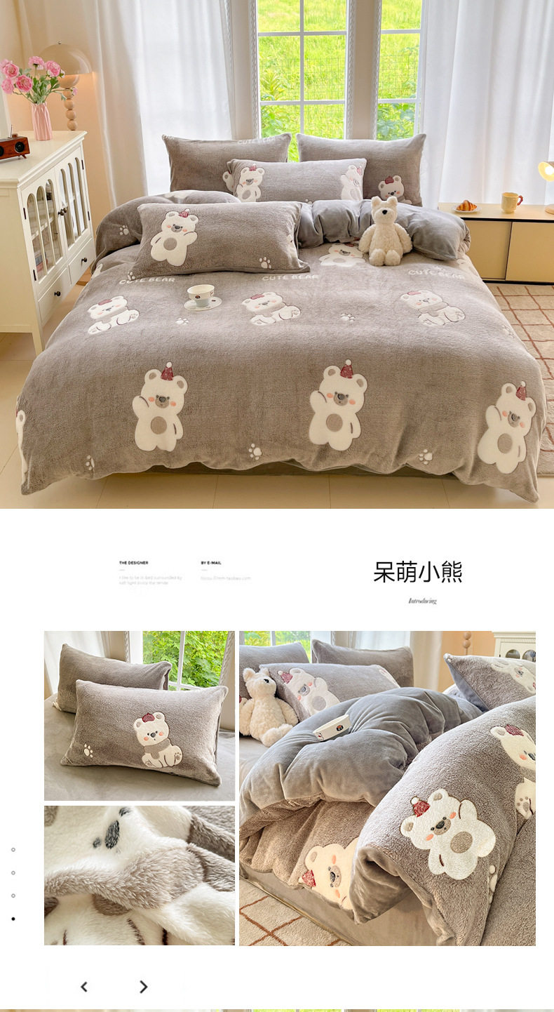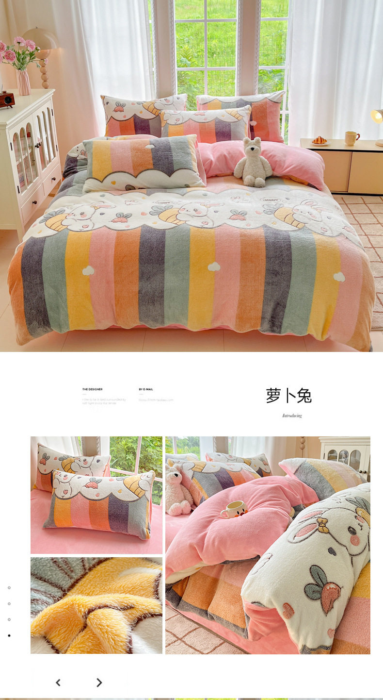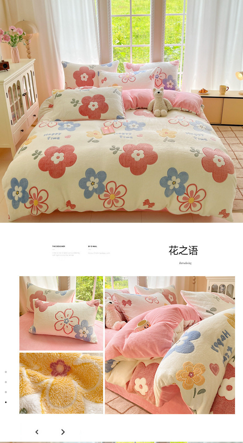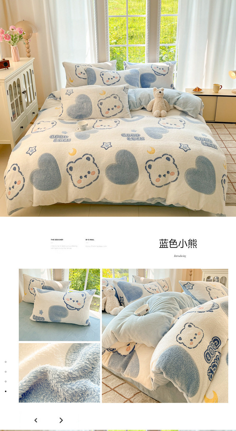 Winter Velvet Flannel Four-Piece Quilt Cover Single-Piece Coral Velvet Three-Piece Set Double-Sided Velvet Dormitory Home Velvet Quilt Cover