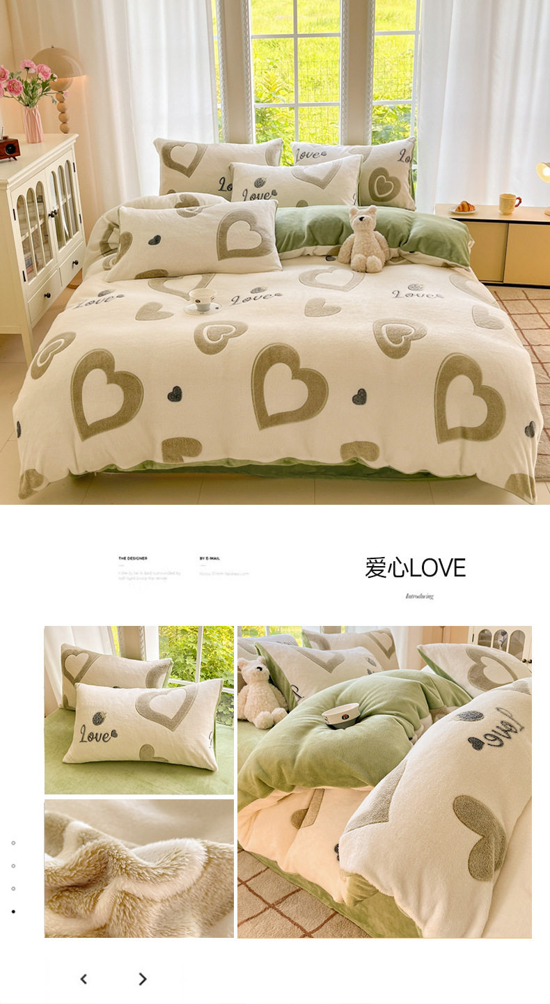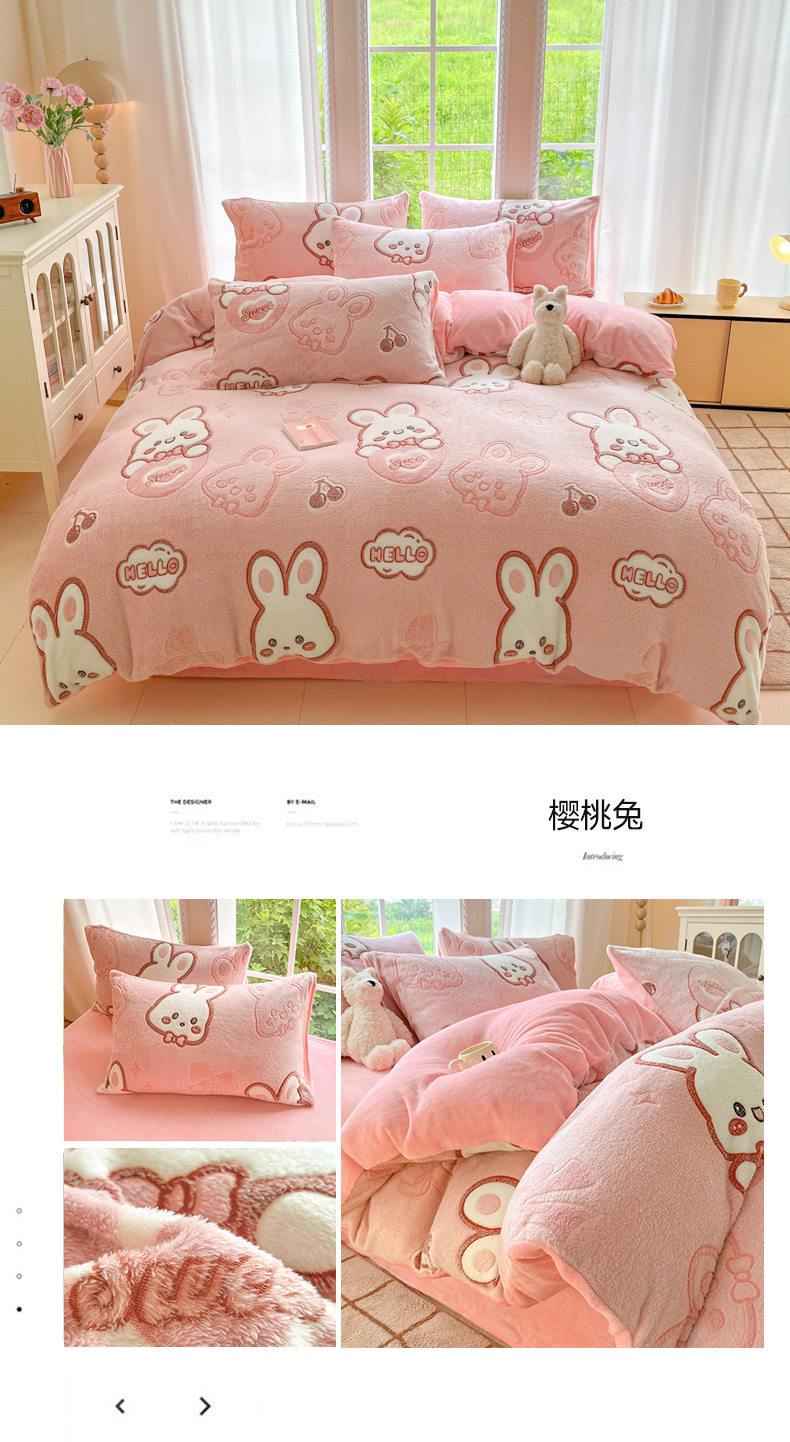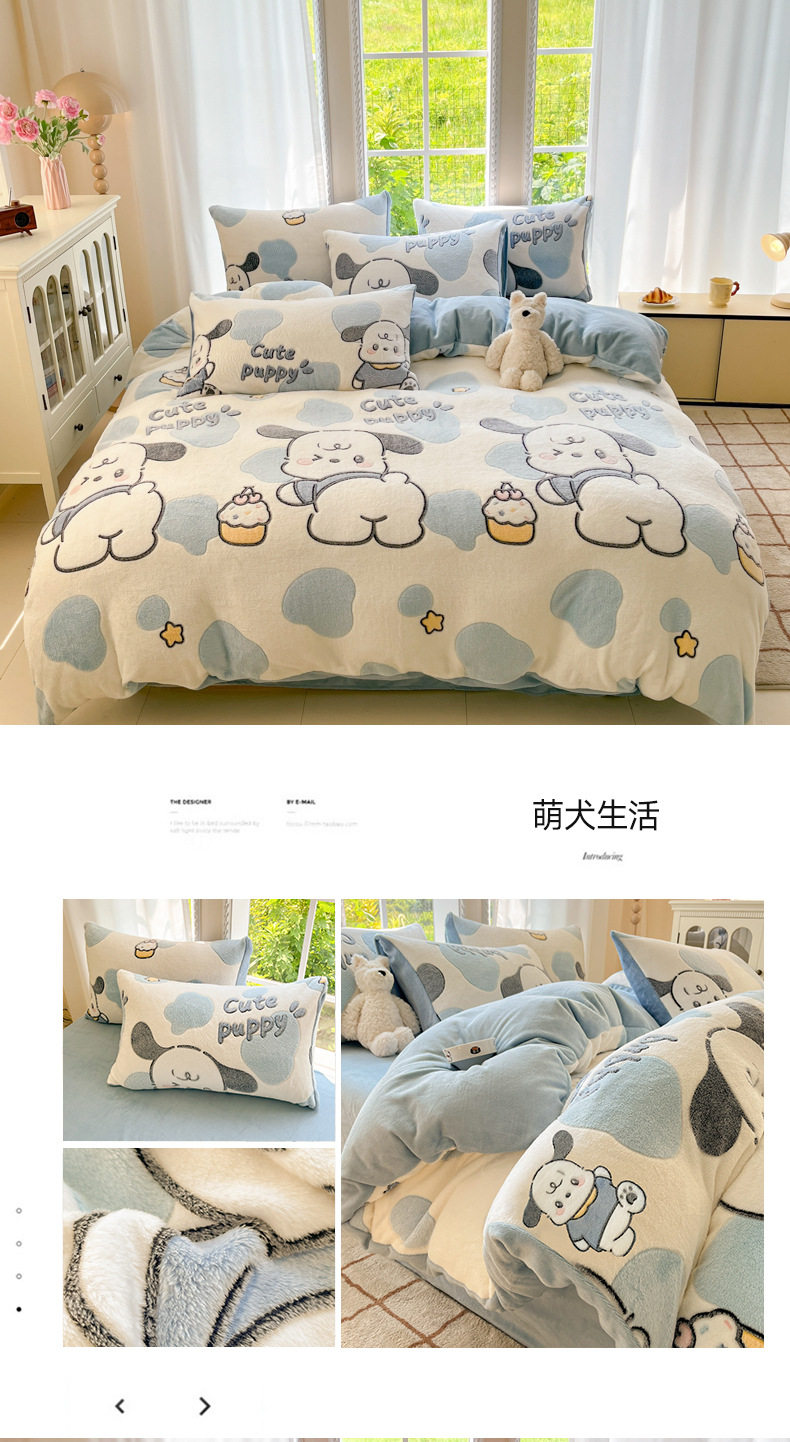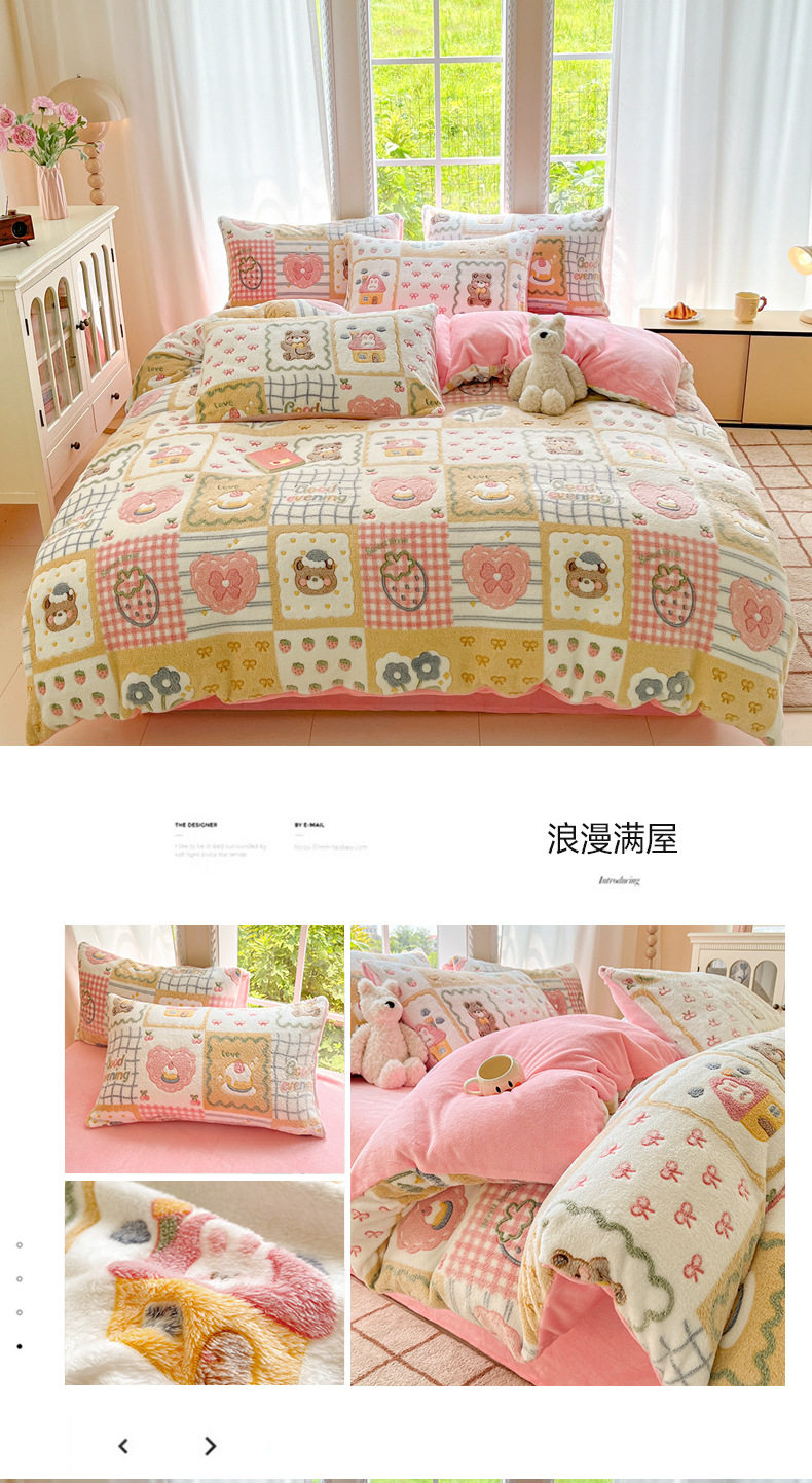 Winter Velvet Flannel Four-Piece Quilt Cover Single-Piece Coral Velvet Three-Piece Set Double-Sided Velvet Dormitory Home Velvet Quilt Cover