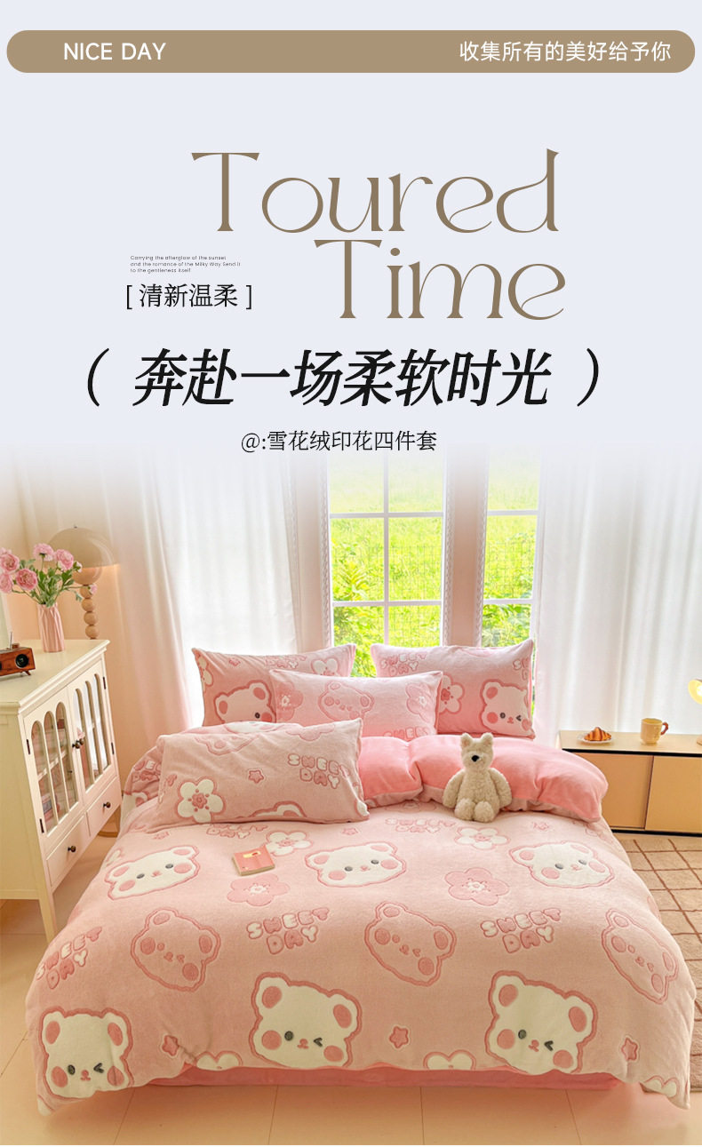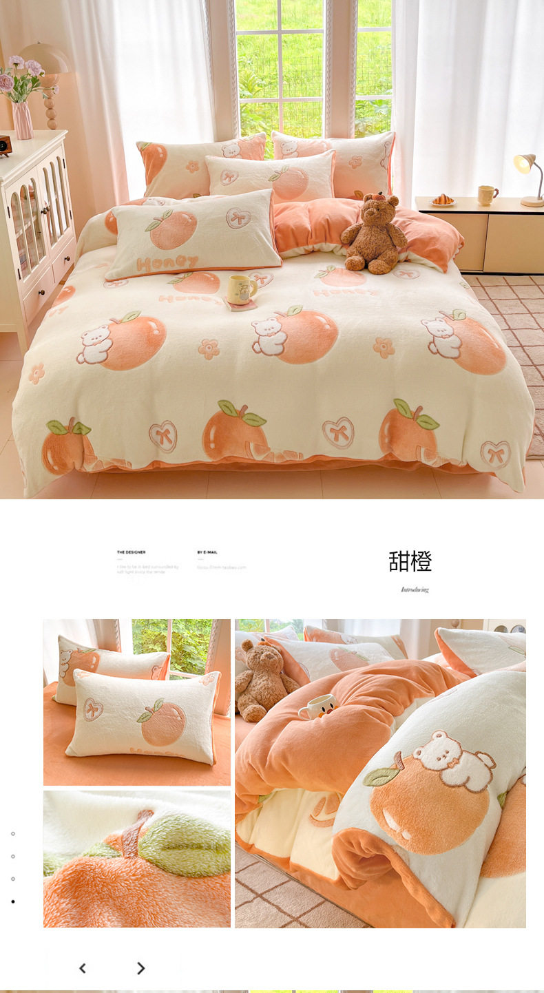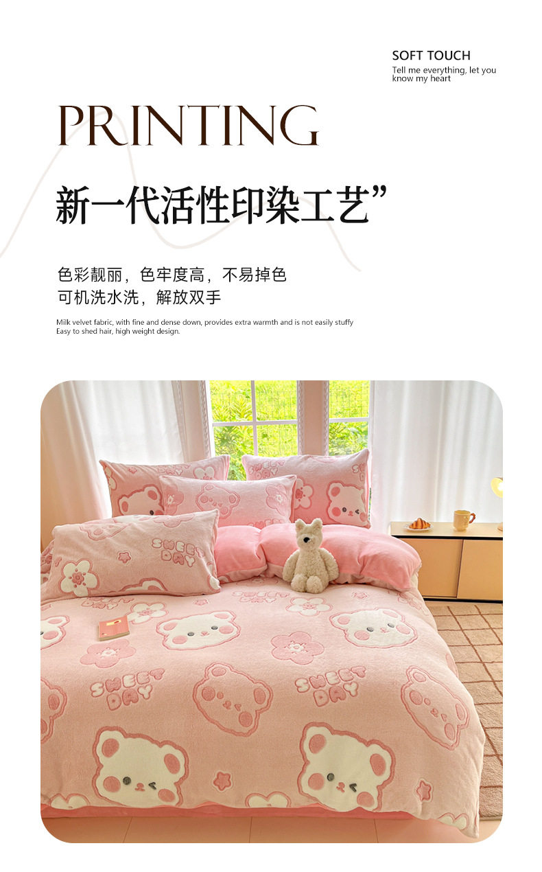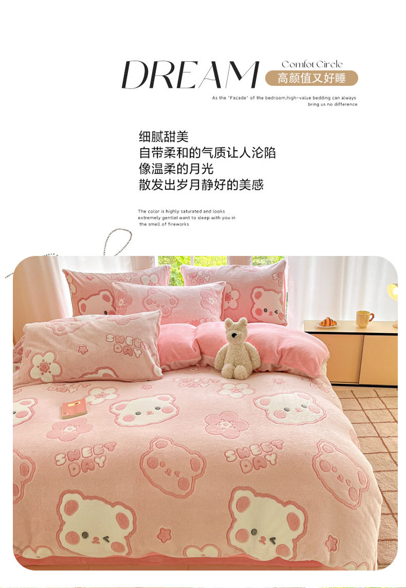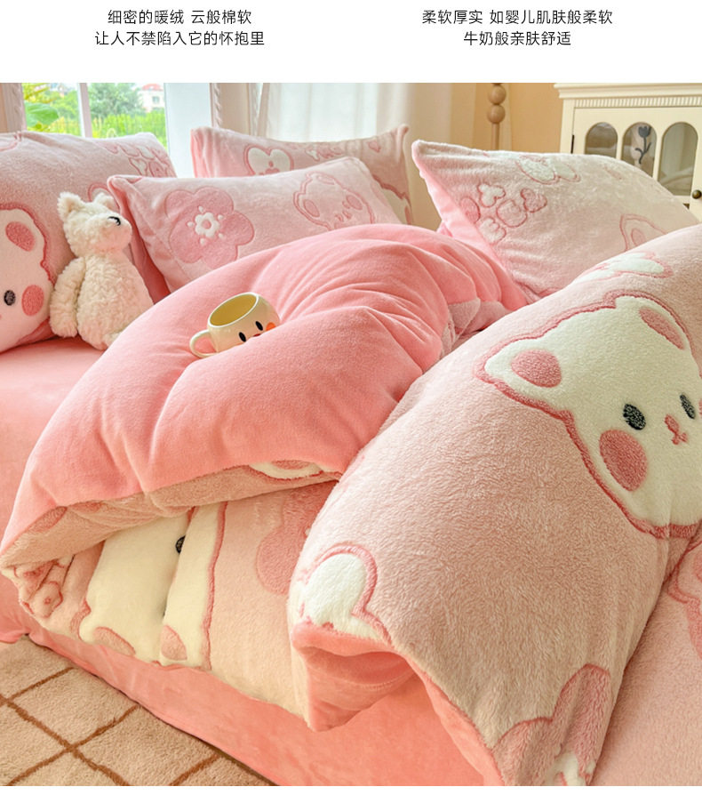 Winter Velvet Flannel Four-Piece Quilt Cover Single-Piece Coral Velvet Three-Piece Set Double-Sided Velvet Dormitory Home Velvet Quilt Cover