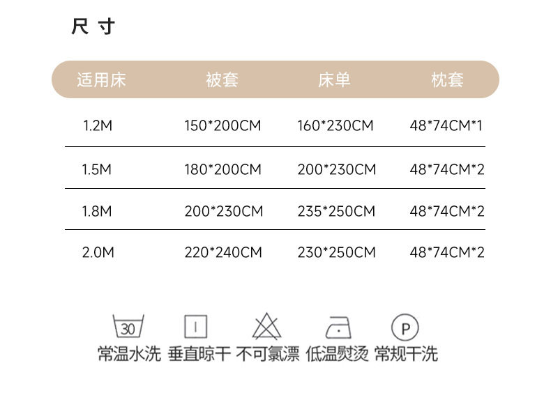 | Size specifications | 150*200cm single quilt cover,180*200cm single quilt cover,200*230cm single quilt cover,220*240cm single quilt cover,1.2m bed sheet three-piece quilt cover 150*200,1.5m bed sheet four-piece quilt cover 180*200,1.8m bed sheet four-piece quilt cover 200*230,2.0m bed sheet four-piece quilt cover 220*240 |