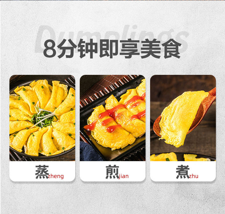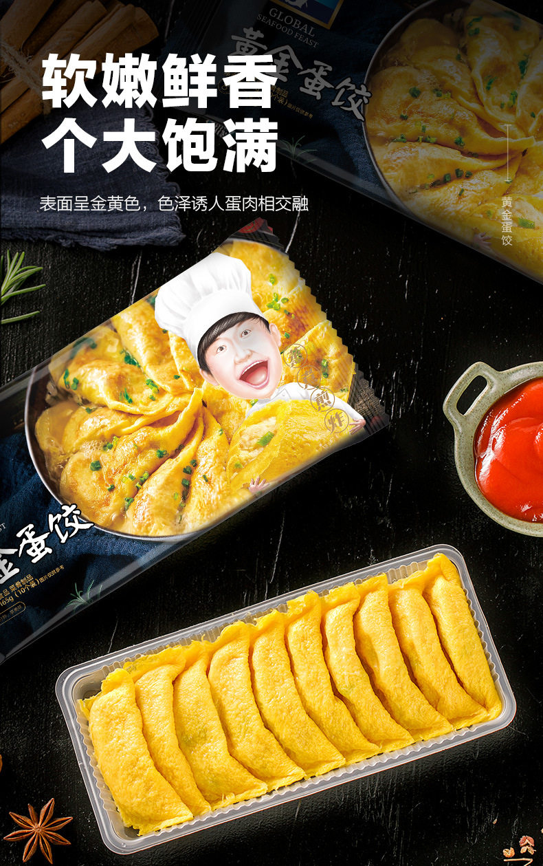 | Packaging specifications | 5 bags of 50 pieces egg dumplings,10 bags of 100 pieces of egg dumplings [recommended] |