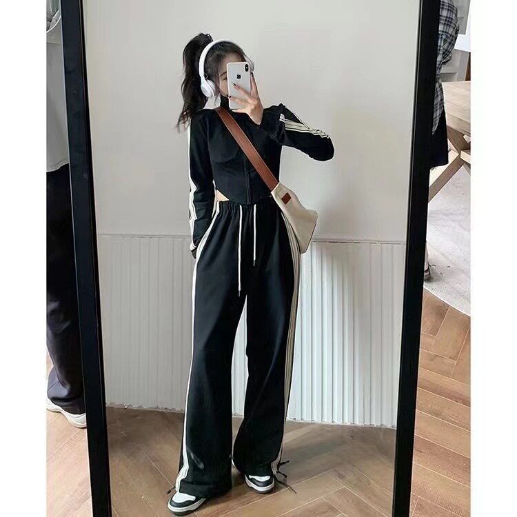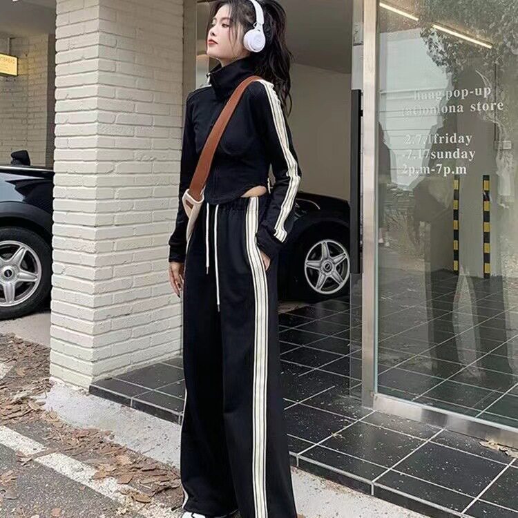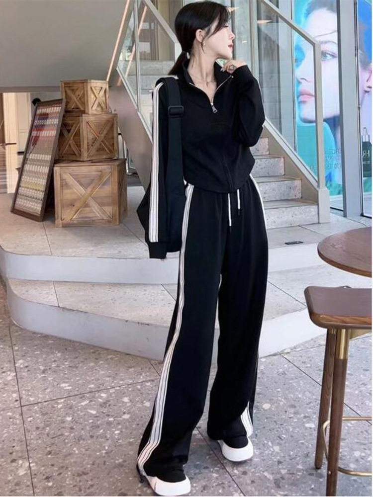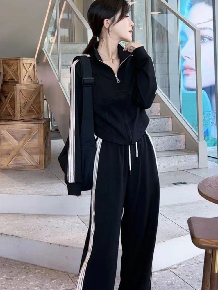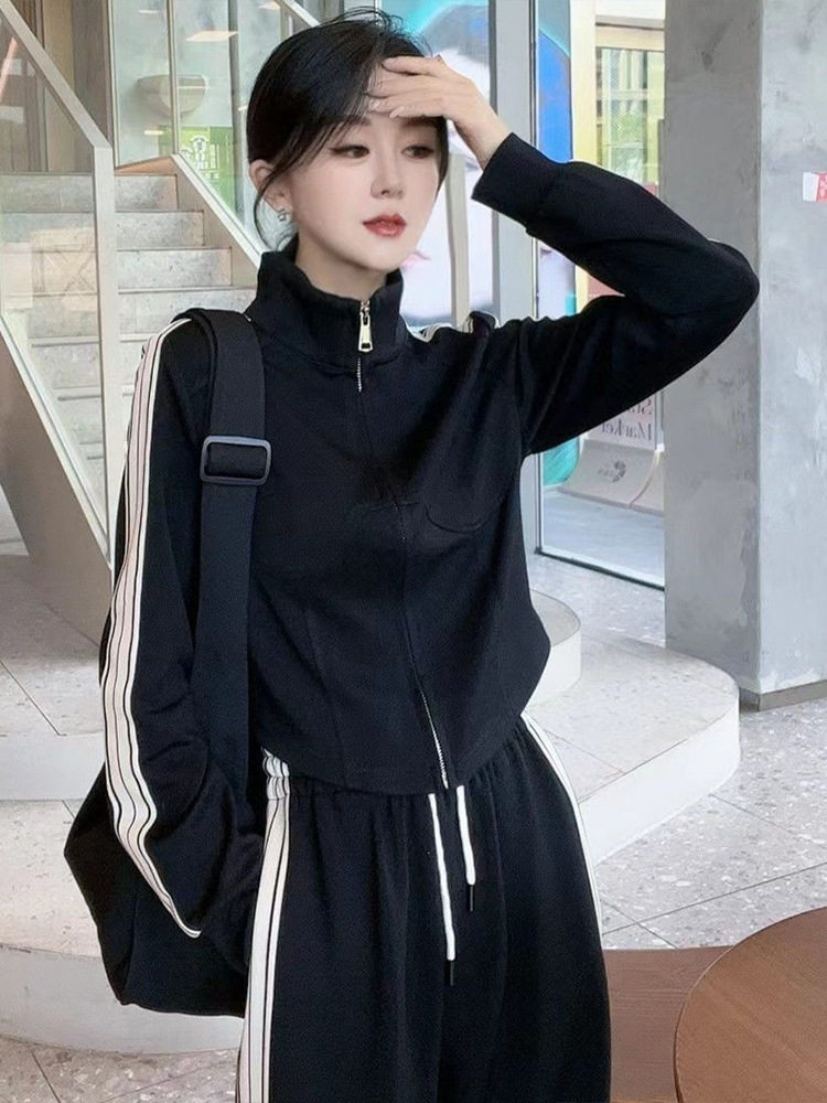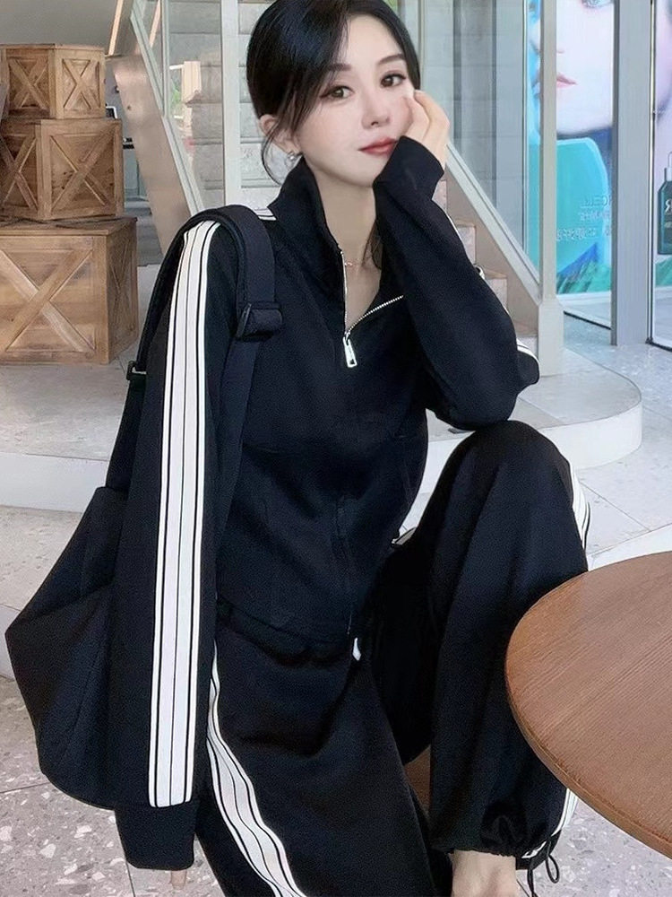 European Casual Sports Suit for Women 2025 Autumn and Winter Stand-Up Collar Fashionable and Slimming Look Slimming Look and Age-Reducing Two-Piece Women's Suit