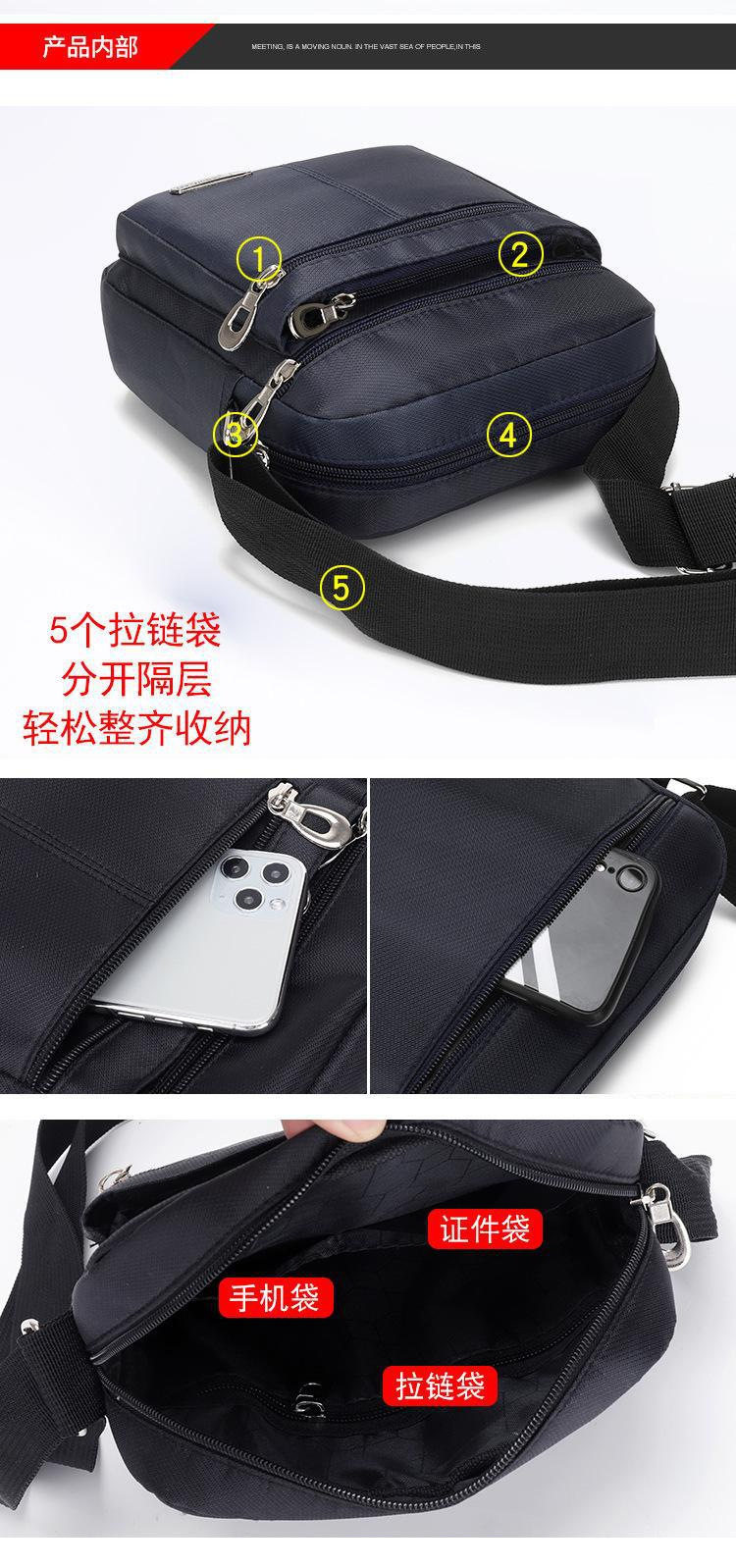 Cross-Border Wholesale Simple and Stylish Crossbody Bag for Men, Oxford Cloth Multi-Pocket Small Square Bag, Business Casual Shoulder Bag, Trendy