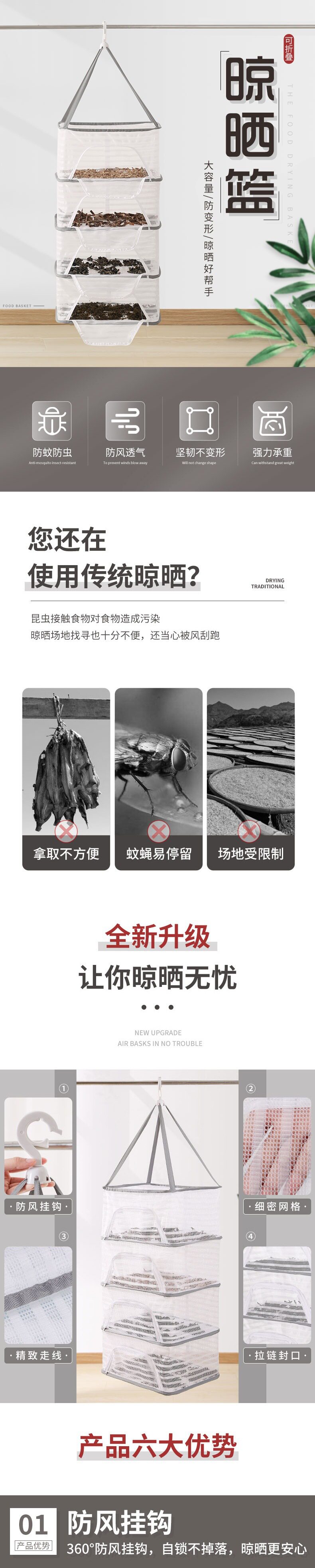 Folding Fish Drying Net with Fly-Proof Cage for Home Use, Drying Fish and Vegetables
