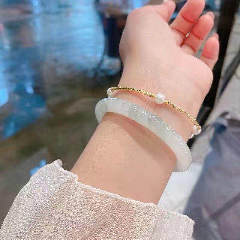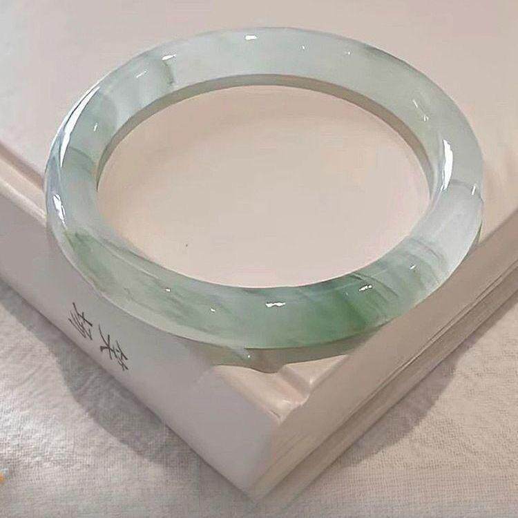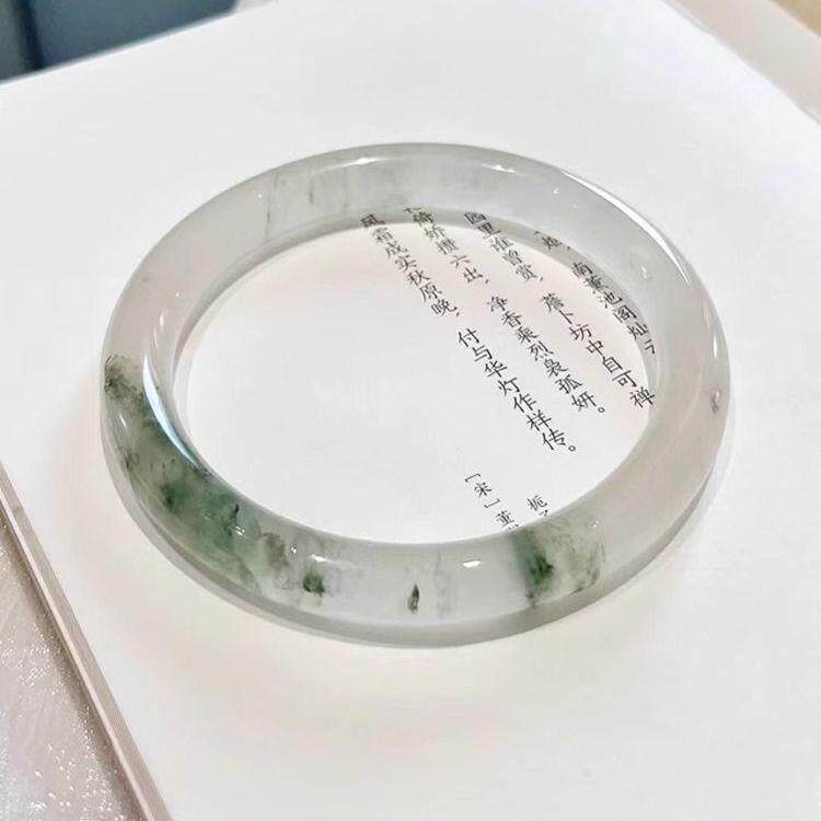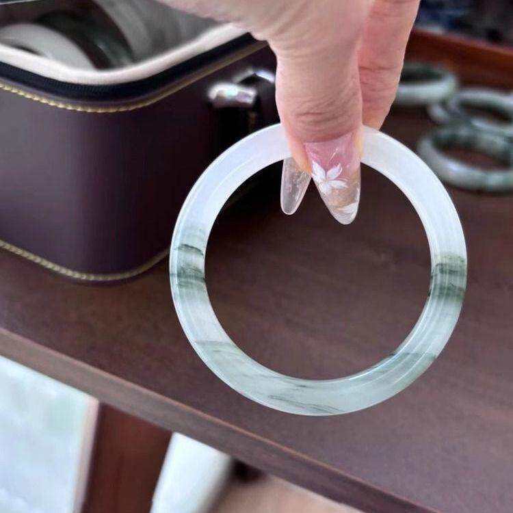 Xinjiang Tianshan Jade Bracelet Half Floating Flower Round Bar Bracelet Beauty Bracelet Ins