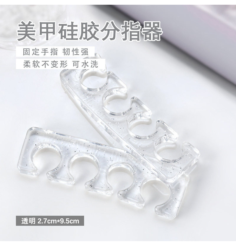 | Specifications | A pair of silicone finger separators (transparent color),A pair of silicone finger separators (pink),A pair of silicone finger separators (yellow),A pair of silicone finger separators (blue),A pair of silicone finger separators (green),A pair of silicone finger separators (purple),A pair of silicone finger separators (black),A pair of silicone finger separators (rose red) |