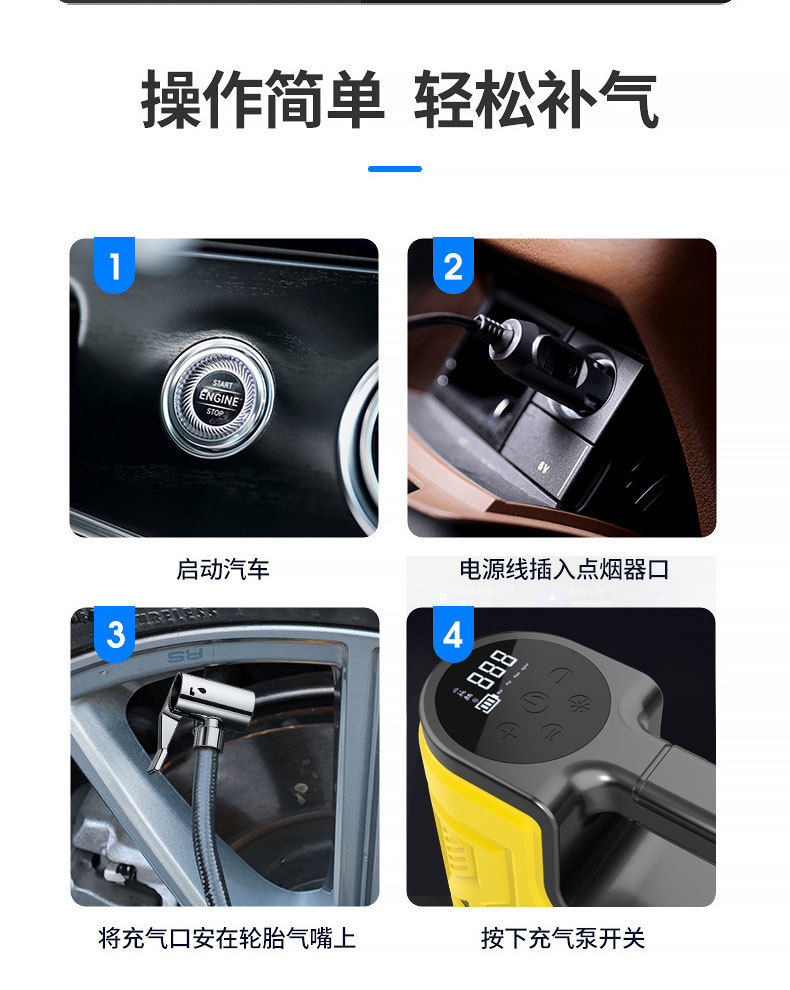 Car Air Pump Portable Car Air Pump Multi-Function Air Pump High-Power Electric Tire Air Pump