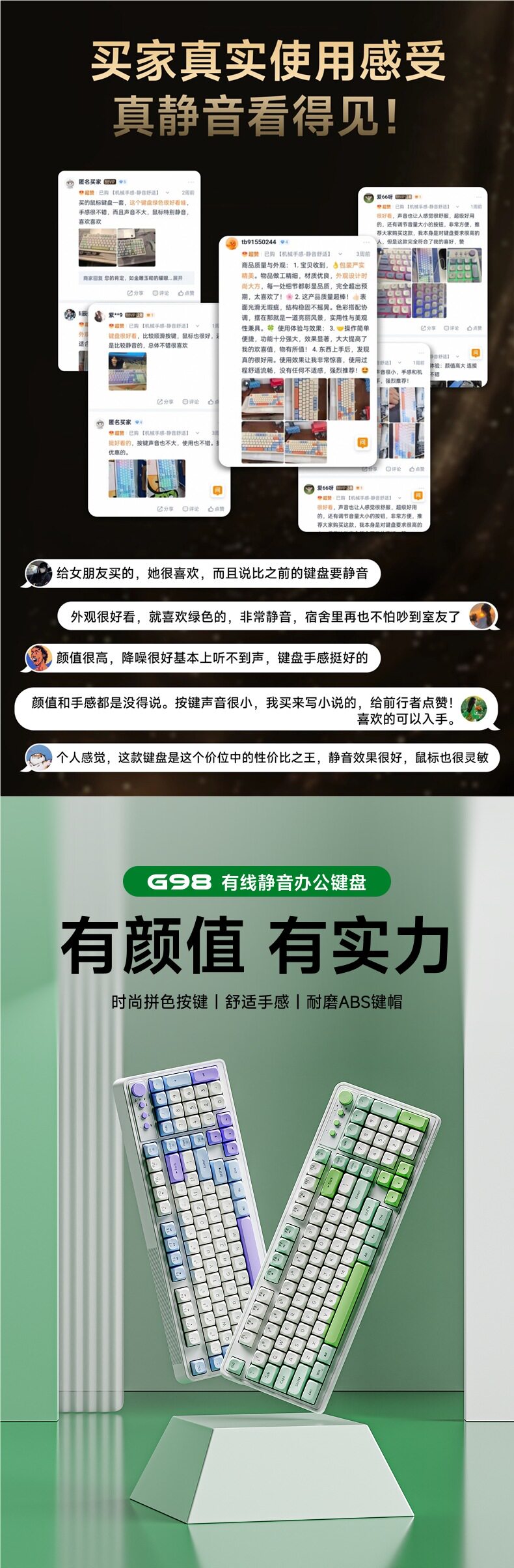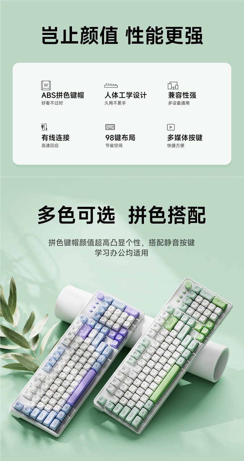 | Color | [mechanical feel-silent and comfortable]-snow green-wired silent single keyboard,[mechanical feel-silent and comfortable]-sea salt-wired silent single keyboard,[mechanical feel-silent and comfortable]-salmon-wired silent single keyboard,[mechanical feel-silent and comfortable]-cream gray-wired silent single keyboard,[mechanical feel-silent and comfortable]-big carbon-wired silent single keyboard,[mechanical feel-silent and comfortable]-snow green-wired keyboard and mouse set,[mechanical feel-silent and comfortable]-sea salt-wired keyboard and mouse set,[mechanical feel-silent and comfortable]-salmon-wired keyboard and mouse set,[mechanical feel-silent and comfortable]-cream gray-wired keyboard and mouse set,[mechanical feel-silent and comfortable]-big carbon-wired keyboard and mouse set |
