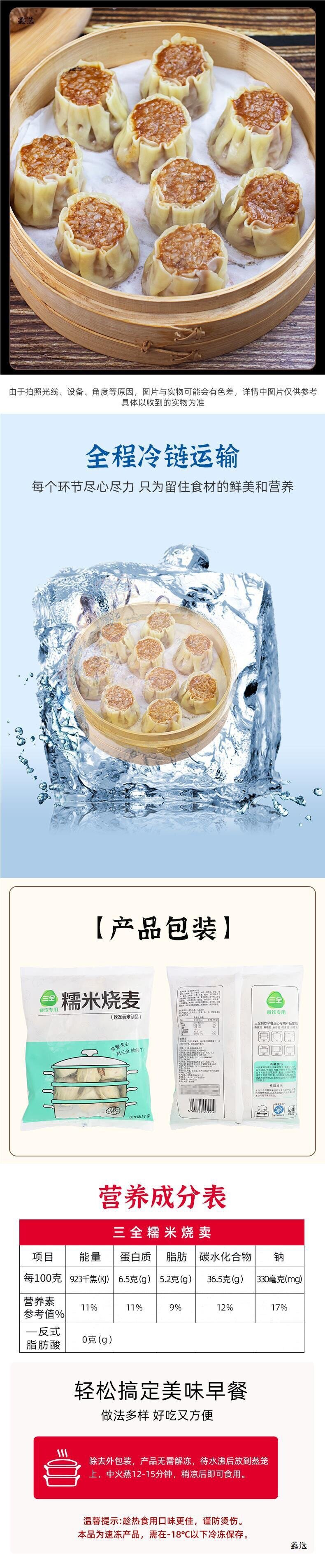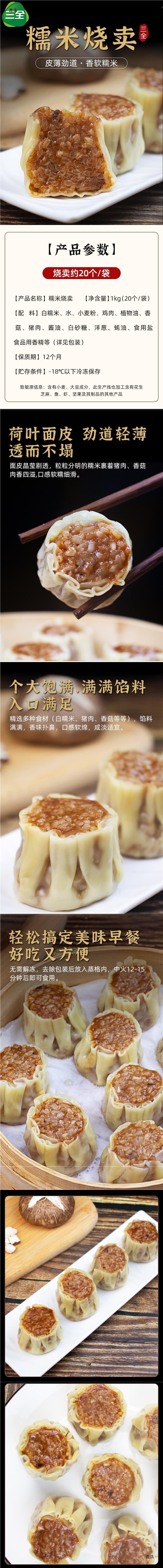 | Packaging specifications | Sanquan glutinous rice shaomai 1.0kg [about 20 pieces] |