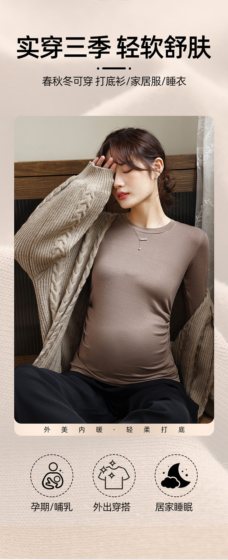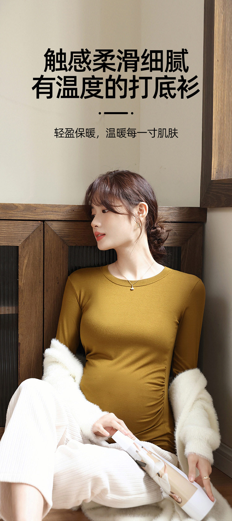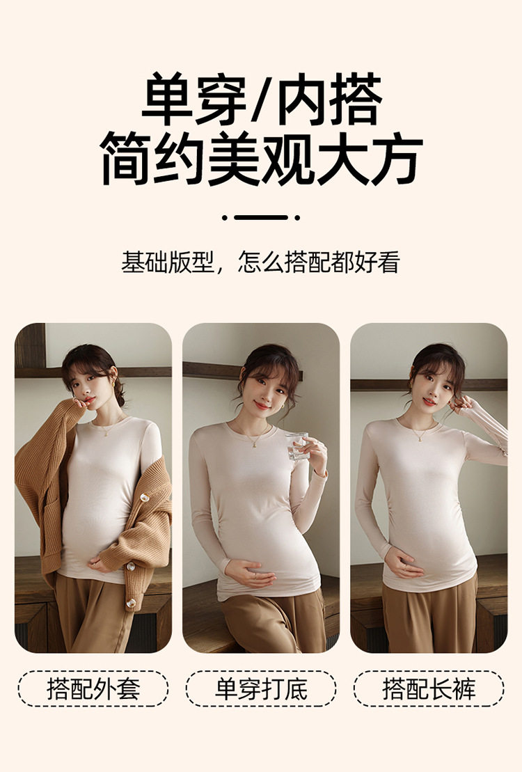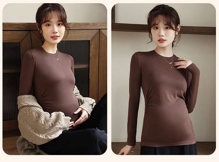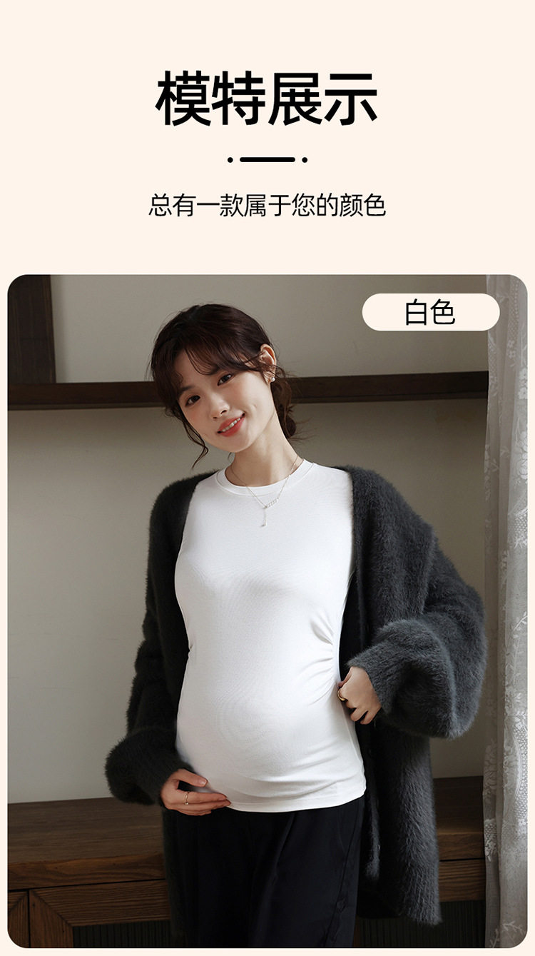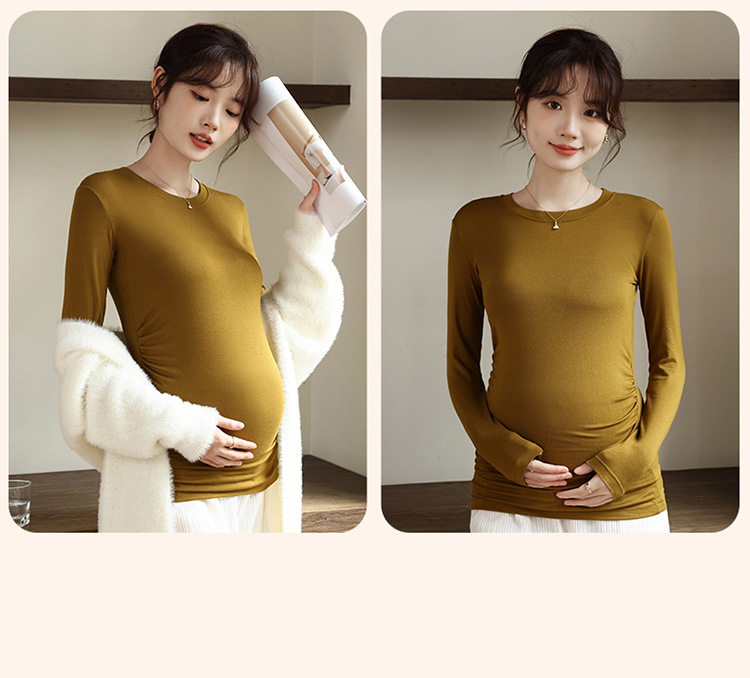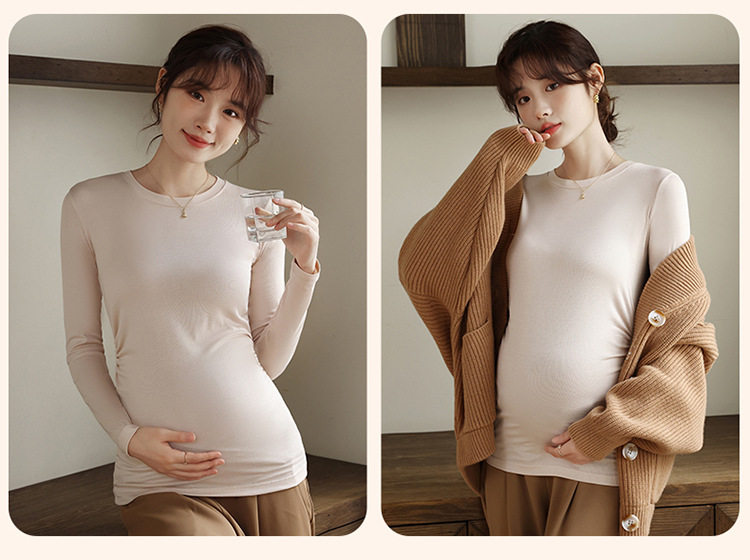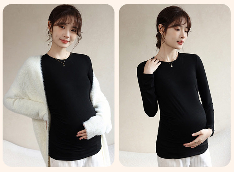 New Autumn and Winter Maternity Wear Maternity Tops Korean Style High Elastic Round Neck Maternity Bottoming Shirt Tops Maternity Autumn Wear