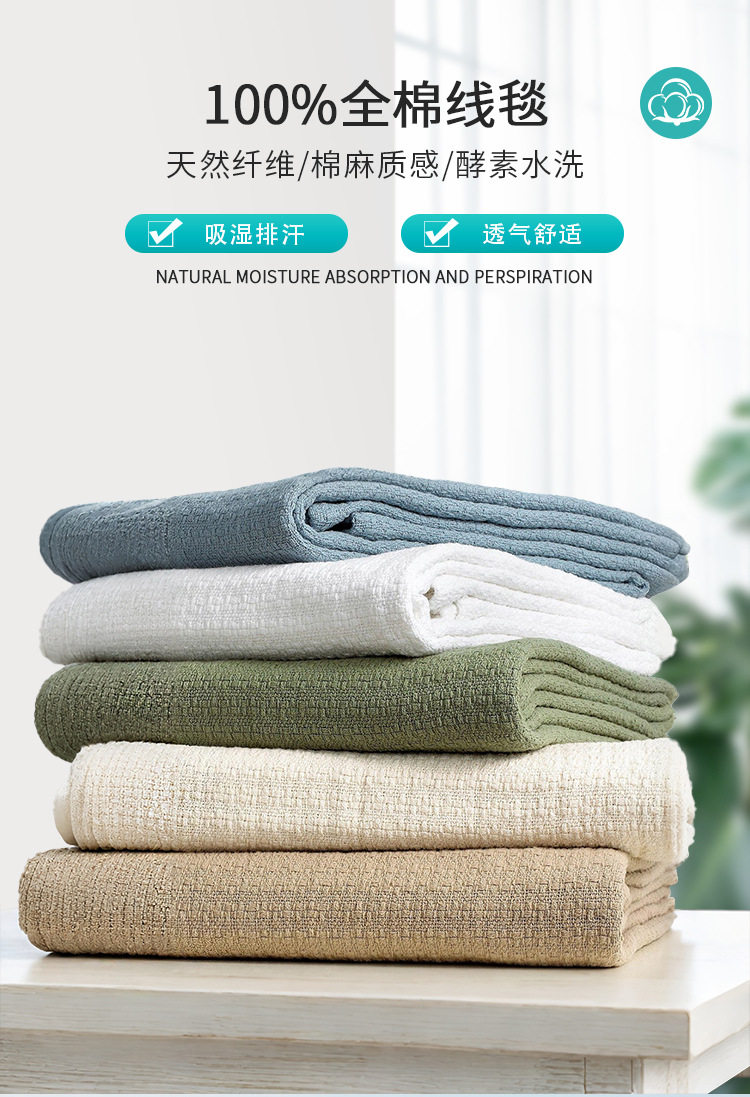 Pure Cotton Thread Blanket, Pure Cotton Nap Blanket, Office Air-Conditioning Blanket, Sofa Towel, Fabric Cover, Multi-Color Towel Quilt