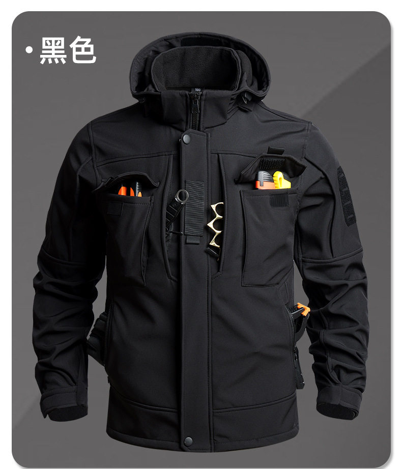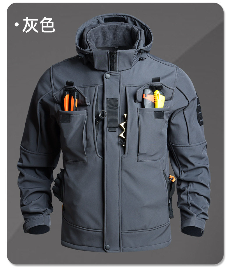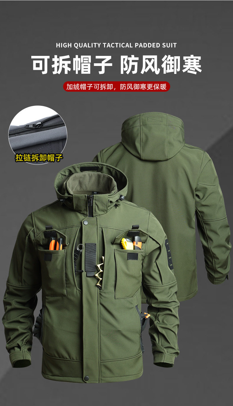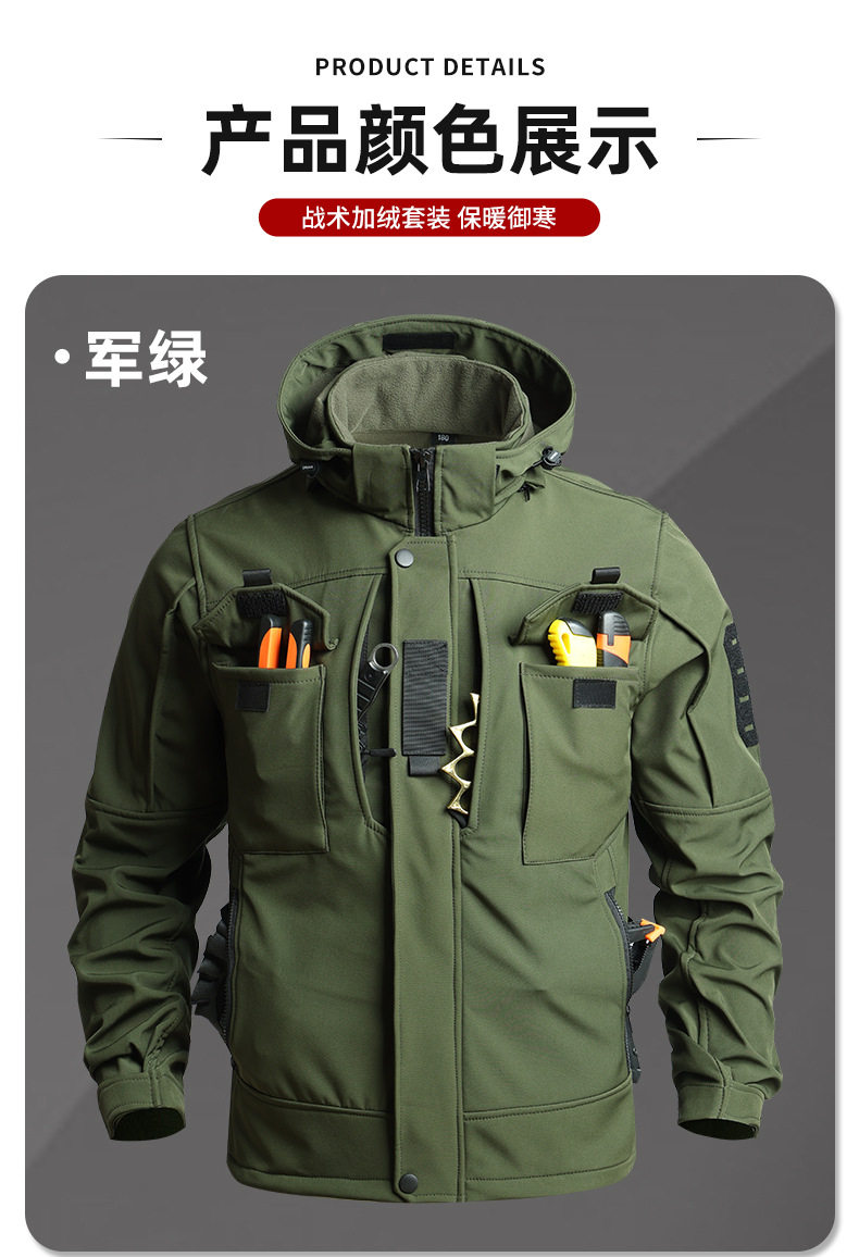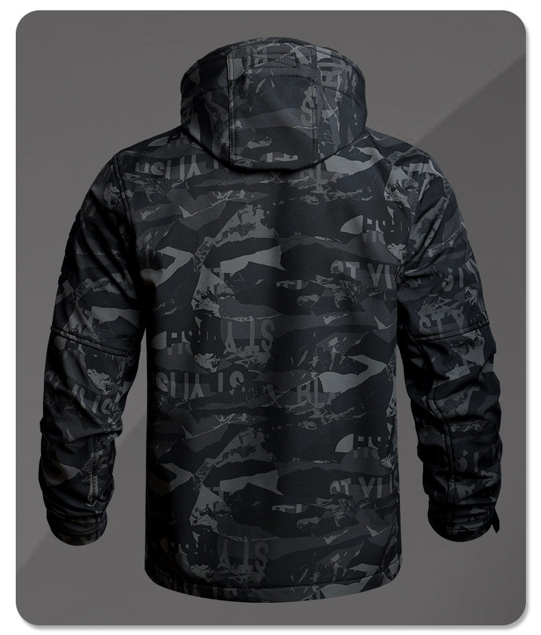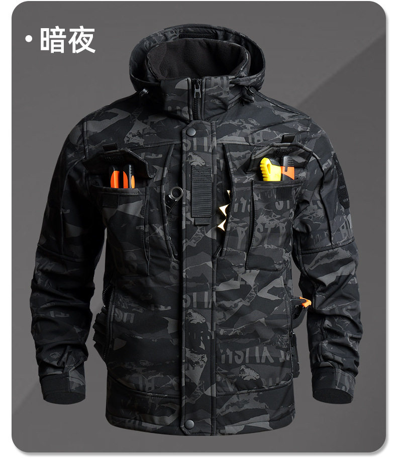 Camouflage Tactical Softshell Jacket Suit for Men, Waterproof Outdoor Fleece-Lined Autumn and Winter Workwear, Cycling, Labor Protection, and Warm