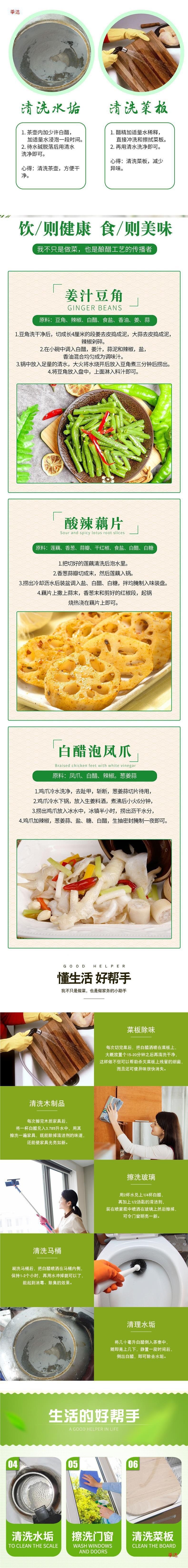 | Packaging specifications | 3.5 degree white vinegar 2.5kg pack,3.5 degree white vinegar 5kg pack,9 degree white vinegar 2.5kg pack,9 degree white vinegar 5kg pack,3.5 degree white vinegar 800ml [tasting size],3.5 degree white vinegar 800ml*2 barrels,3.5 degree white vinegar 800ml*3 barrels |