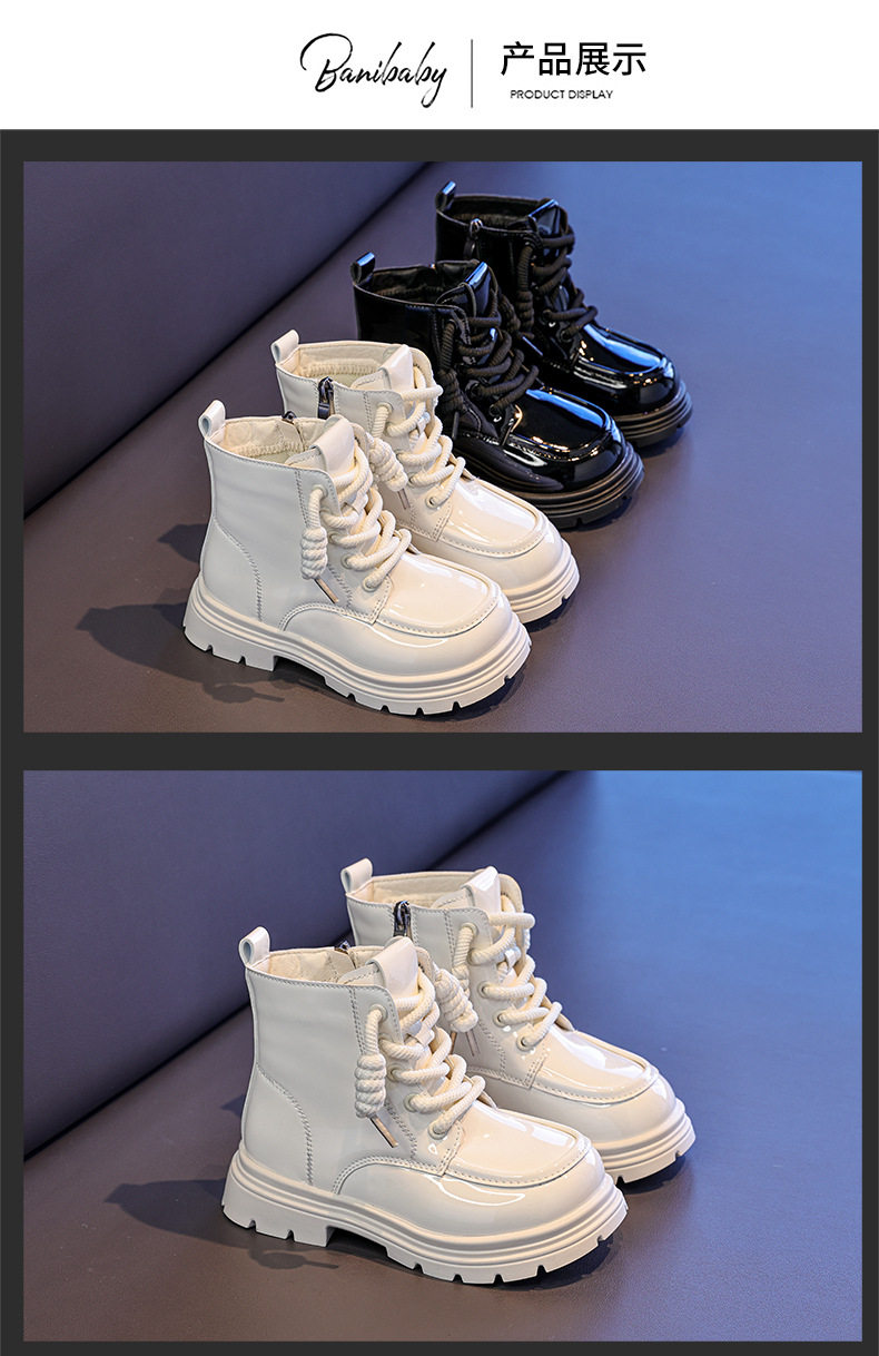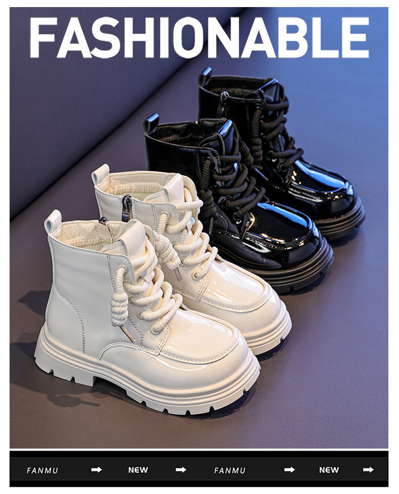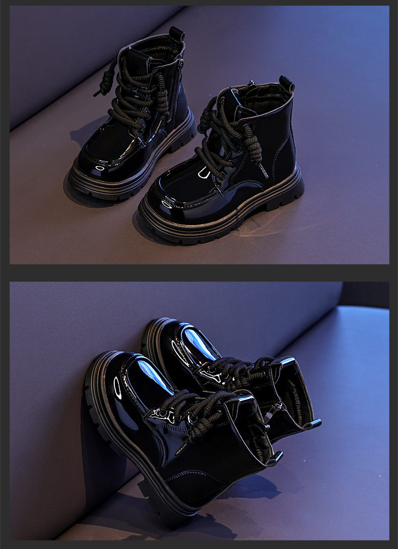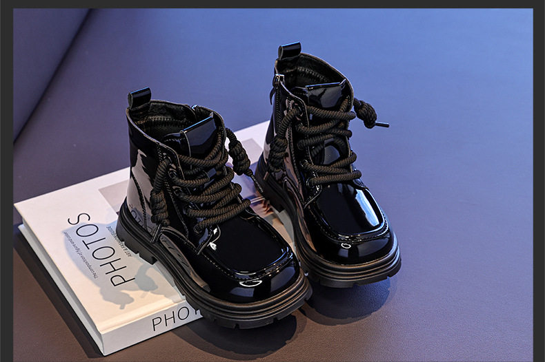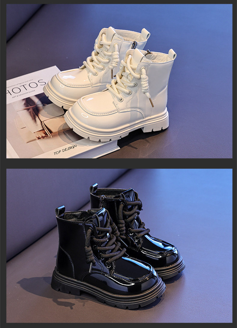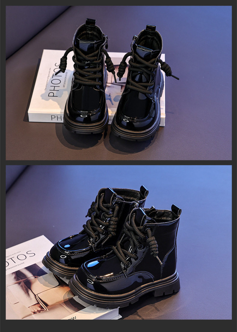 Girls' Patent Leather Boots 2025 Spring and Autumn New Children's Martin Boots Fashionable Versatile Short Boots Trendy Versatile Fashion