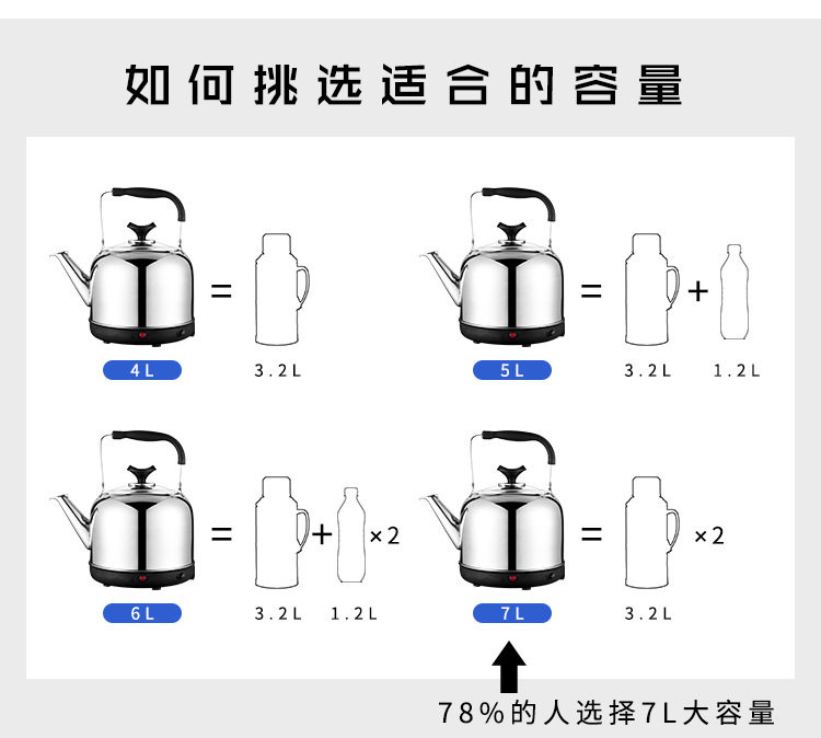 | Color | 4l high-liter kettle (with heat preservation switch),5l high-liter kettle (with heat preservation switch),6l high-liter kettle (with heat preservation switch),7l high-liter kettle (with heat preservation switch),10l high-liter kettle (with heat preservation switch) |