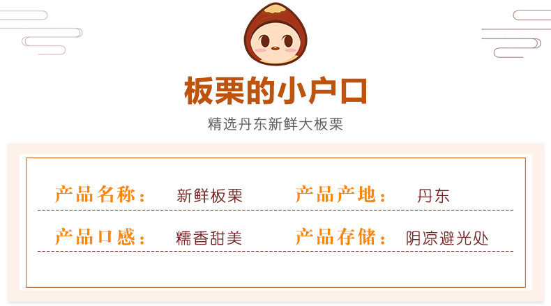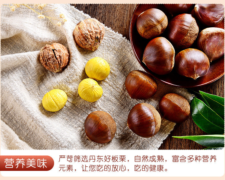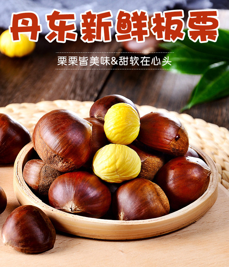 | Packaging specifications | Dandong chestnut 0.25kg,Dandong chestnut 0.5kg,Dandong chestnut 1.0kg,Dandong chestnut 1.5kg,Dandong chestnut 2kg,Dandong chestnut 2.5kg,Dandong chestnut 4kg,Dandong chestnut 2.25kg,Dandong chestnut 4.25kg,Dandong chestnut 4.5kg |