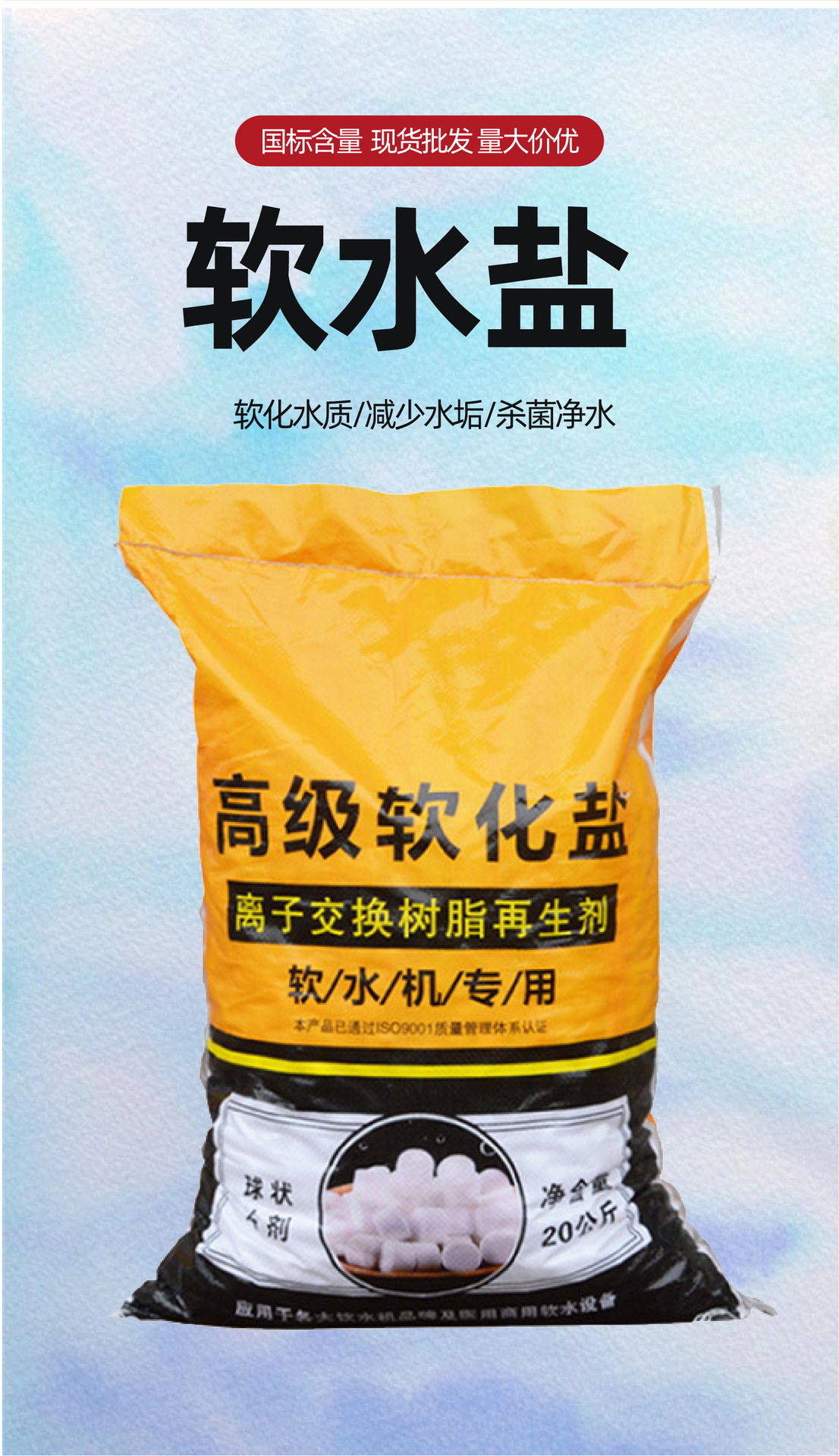 Soft Water Salt Softens Water Quality, Reduces Scale, Sterilizes and Purifies Water. Manufacturer's Spot Industrial Grade Soft Water Salt