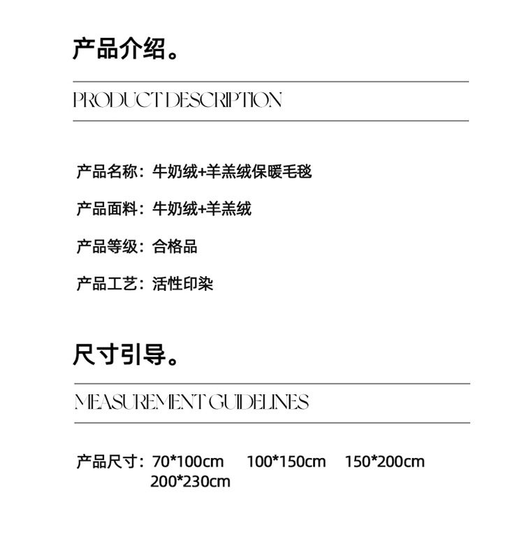 | Size specifications | 70*100cm-single blanket,100*150cm-single blanket,150*200cm-single blanket,200*230cm-single blanket |