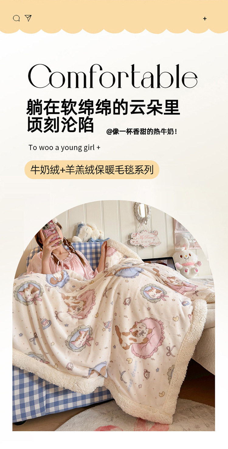 2025 New Autumn and Winter Milk Velvet Blanket Ins Style Cashmere Double-Sided Velvet Sofa Blanket Office Nap Blanket