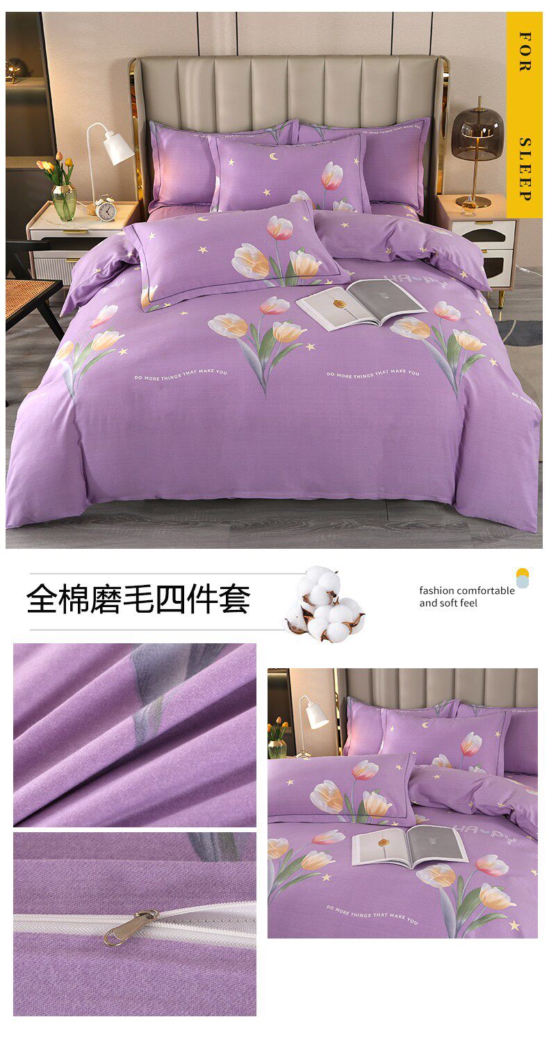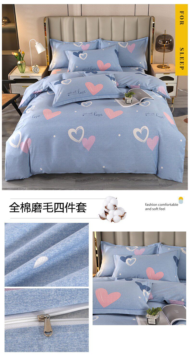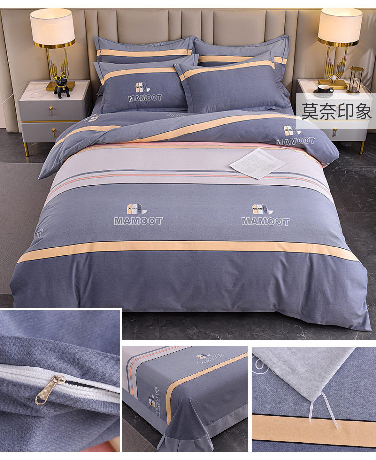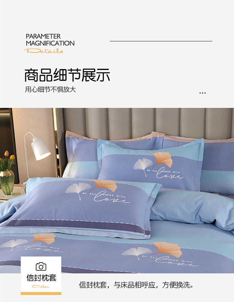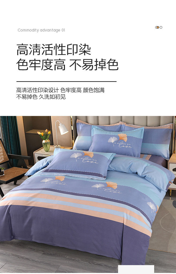 | Size specifications | 1.5m bed sheet four-piece set (quilt cover 180*220cm),1.8m bed sheet four-piece set (quilt cover 200*230cm),2.0m bed sheet four-piece set (quilt cover 220*240cm) |