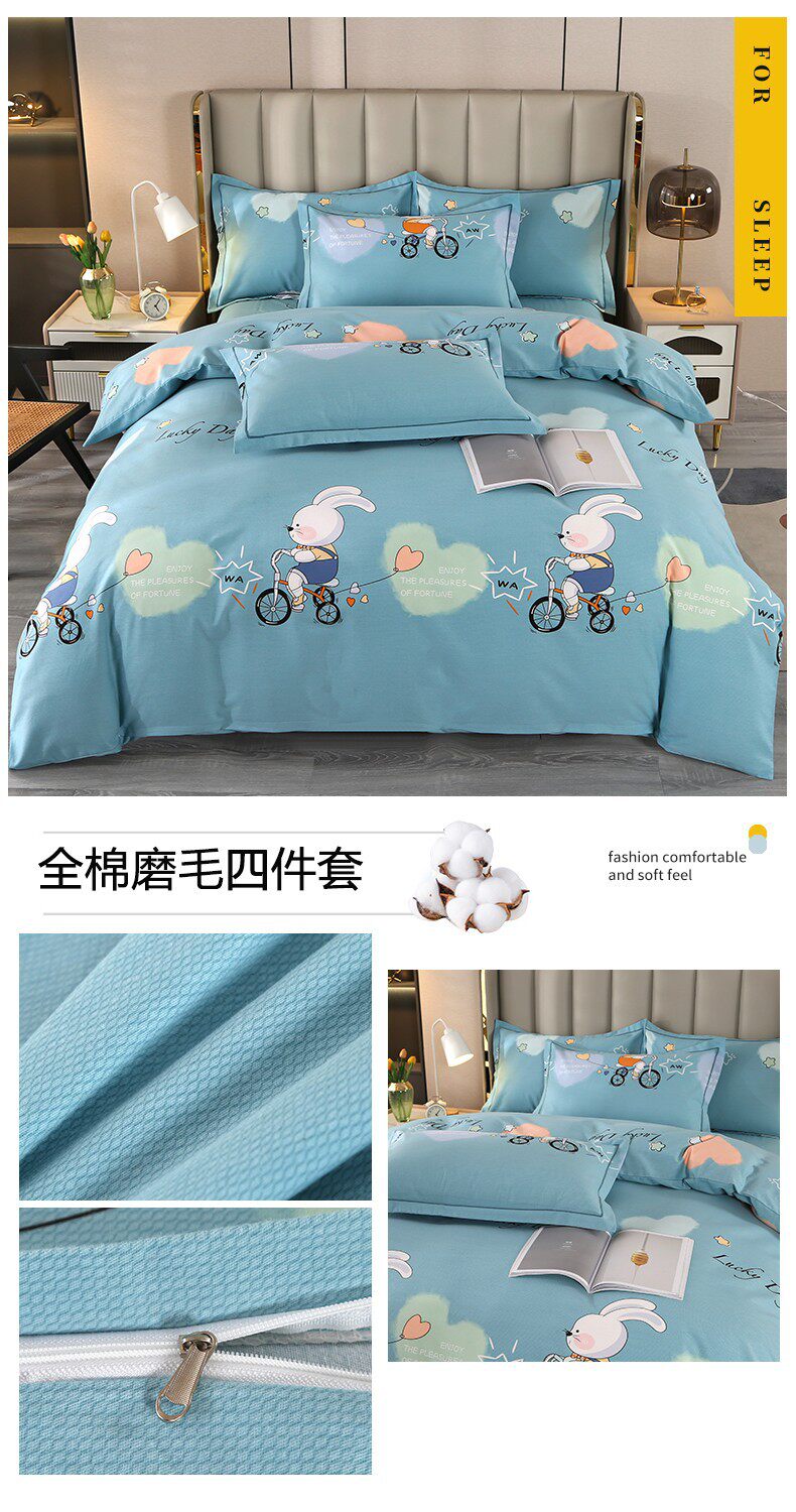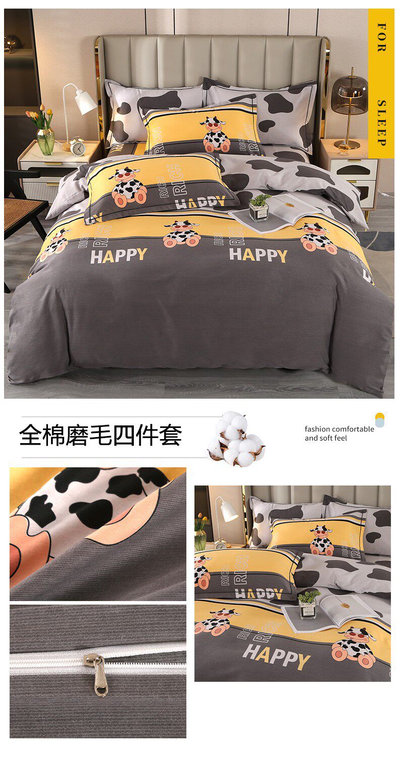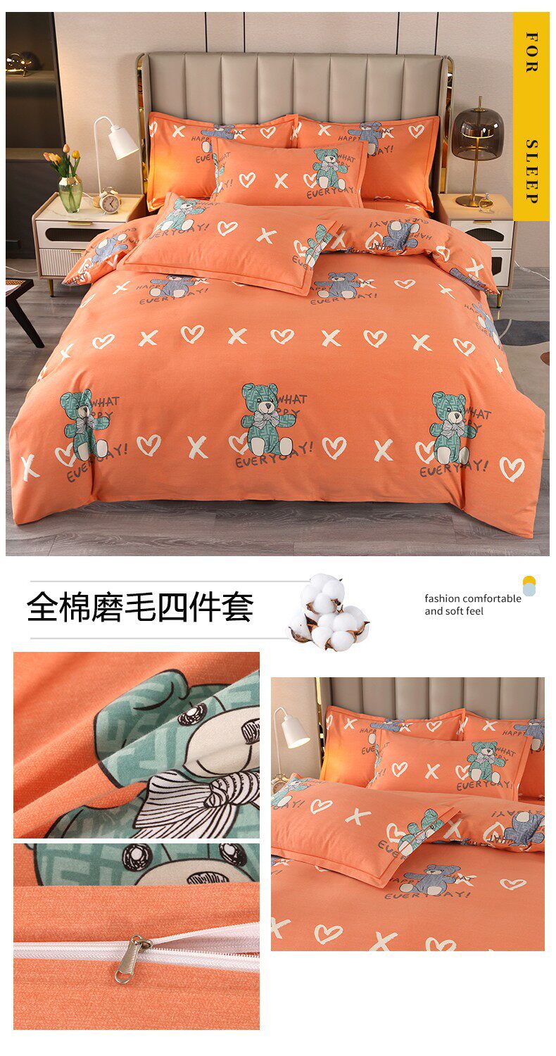 2025 New Upgraded Cotton Brushed Four-Piece Set Jet Pure Cotton Thickeneded Bed Bed Sheets Quilt Cover Ins Style Super Soft 4-Piece Set
