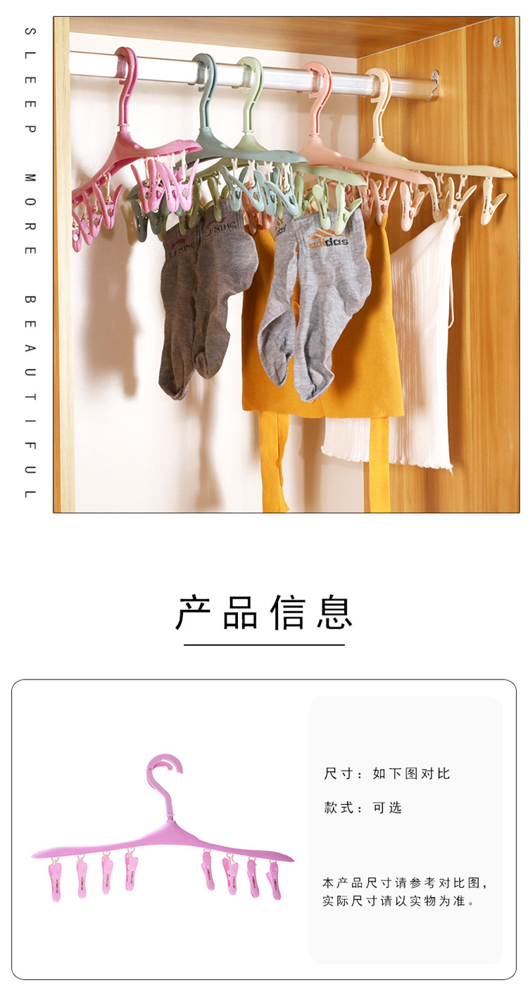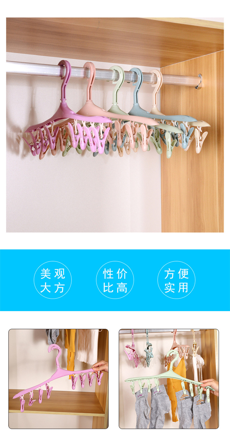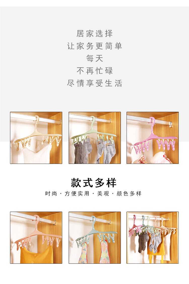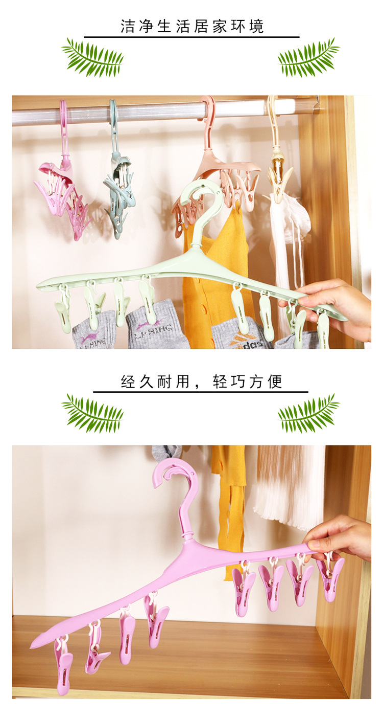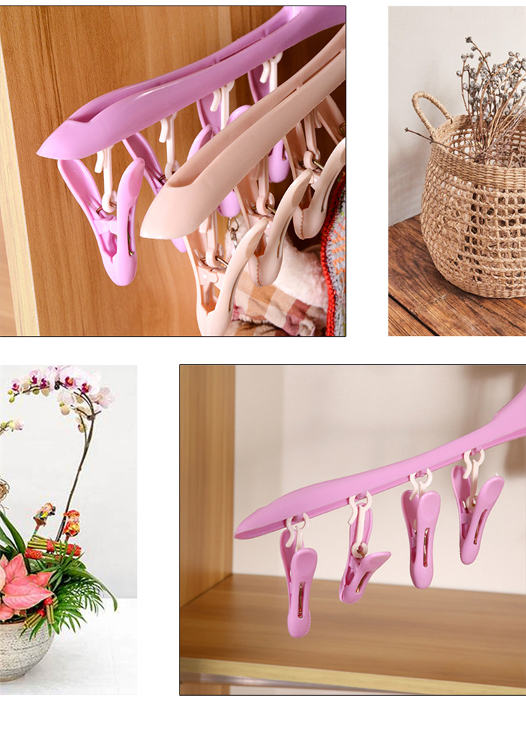Plastic Windproof Buckle Drying Rack for Small Items, Socks, Non-Slip Drying Rack with 8 Clips, Multi-Head Drying Rack