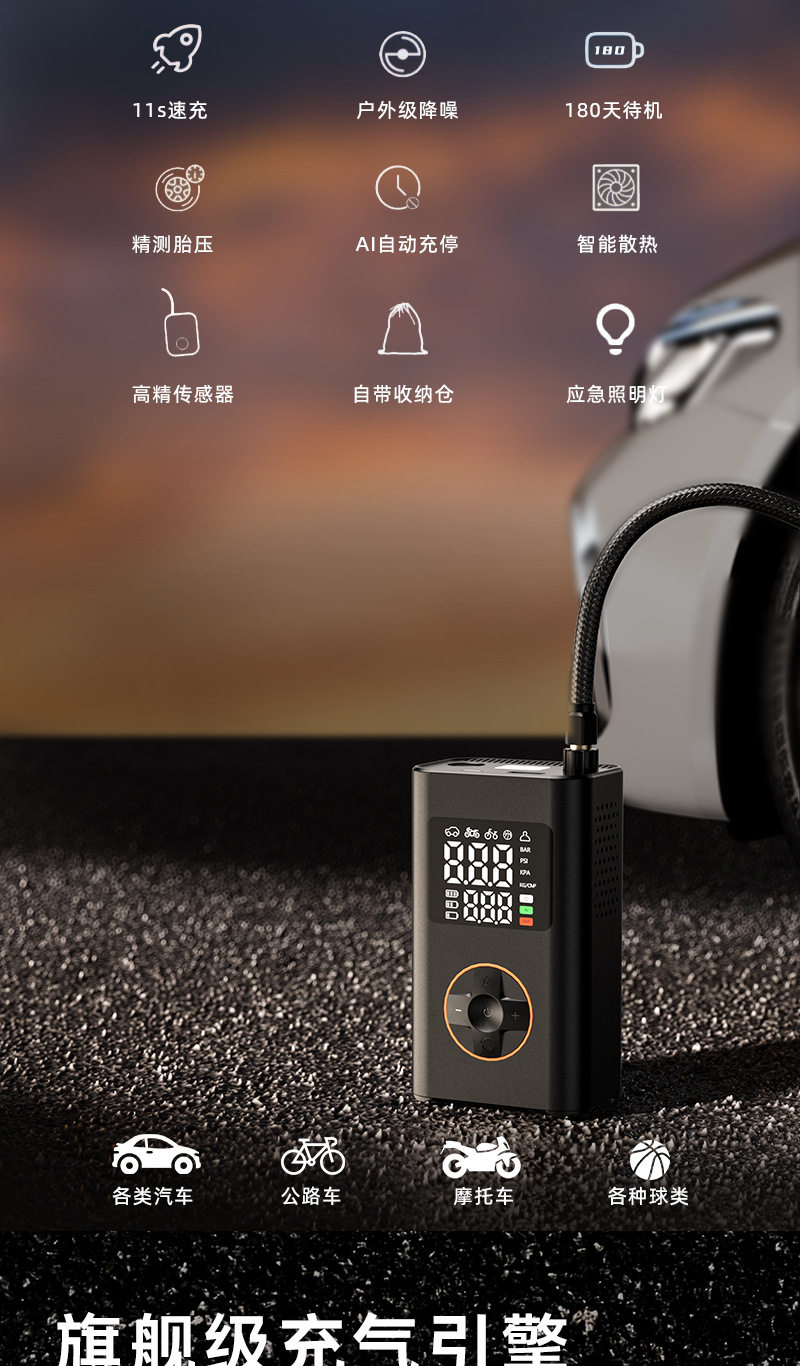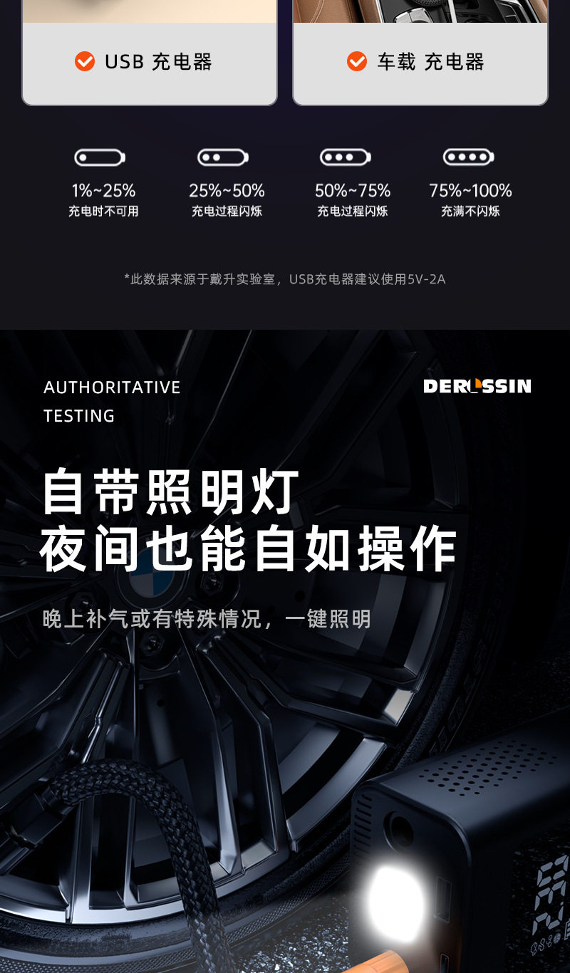 | Additional features | Lighting,Tire pressure gauge,Warning light,Usb charging |