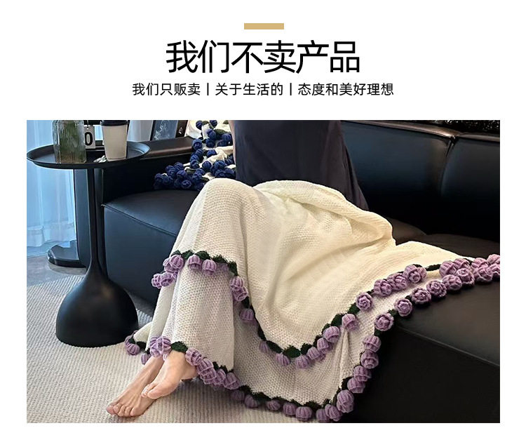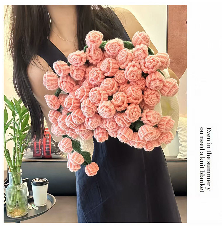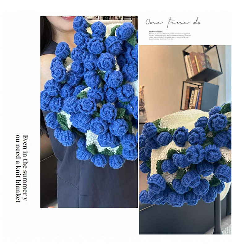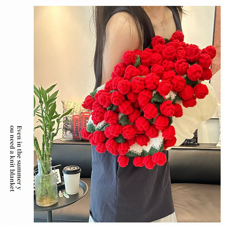 Woven Rose Bouquet Blanket, Yarn Nap Blanket, Handmade Blanket as a Gift for Girlfriend or Best Friend for Chinese Valentine's Day
