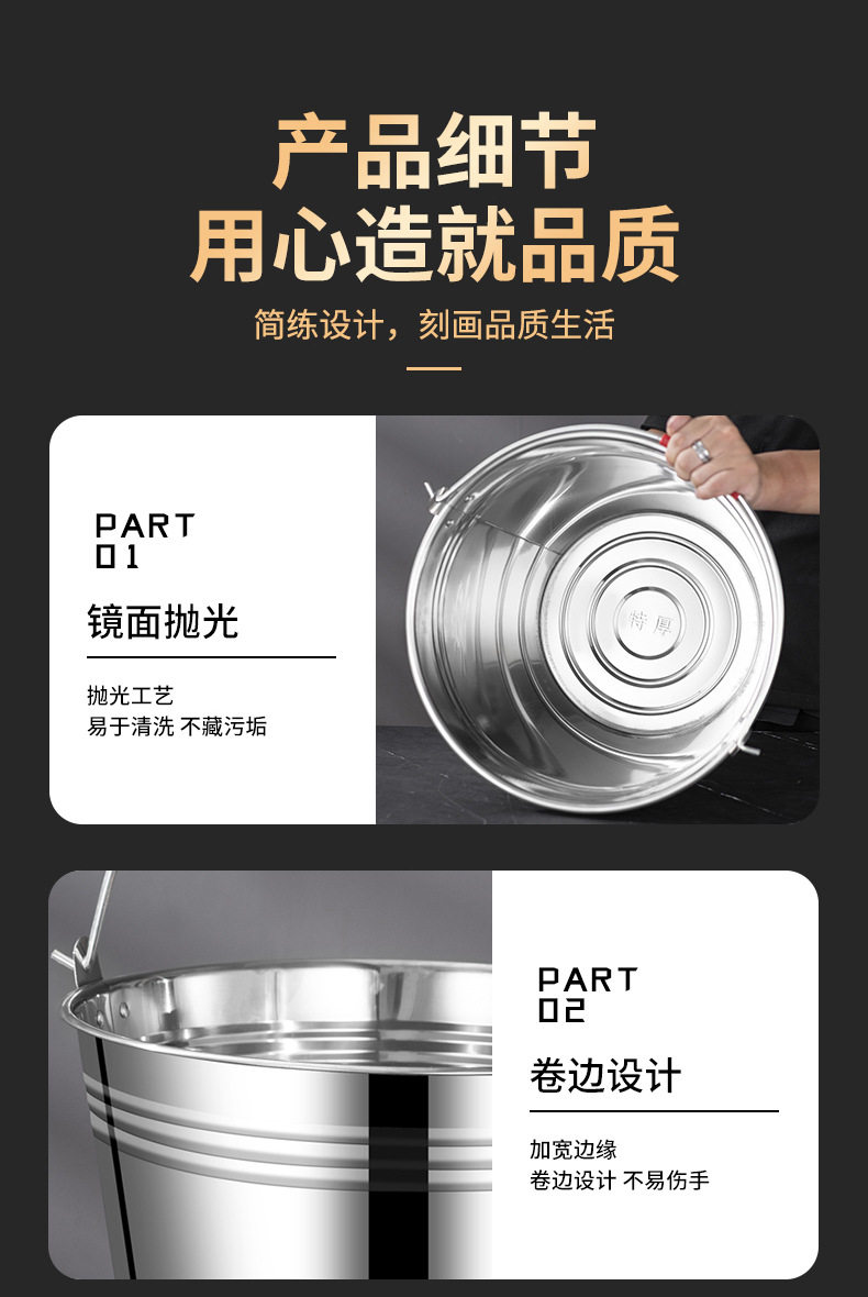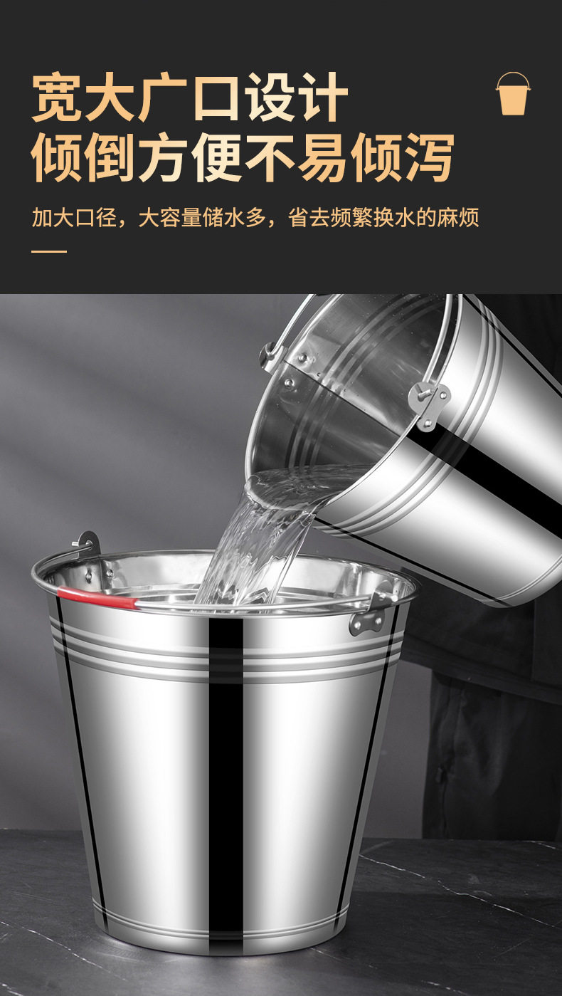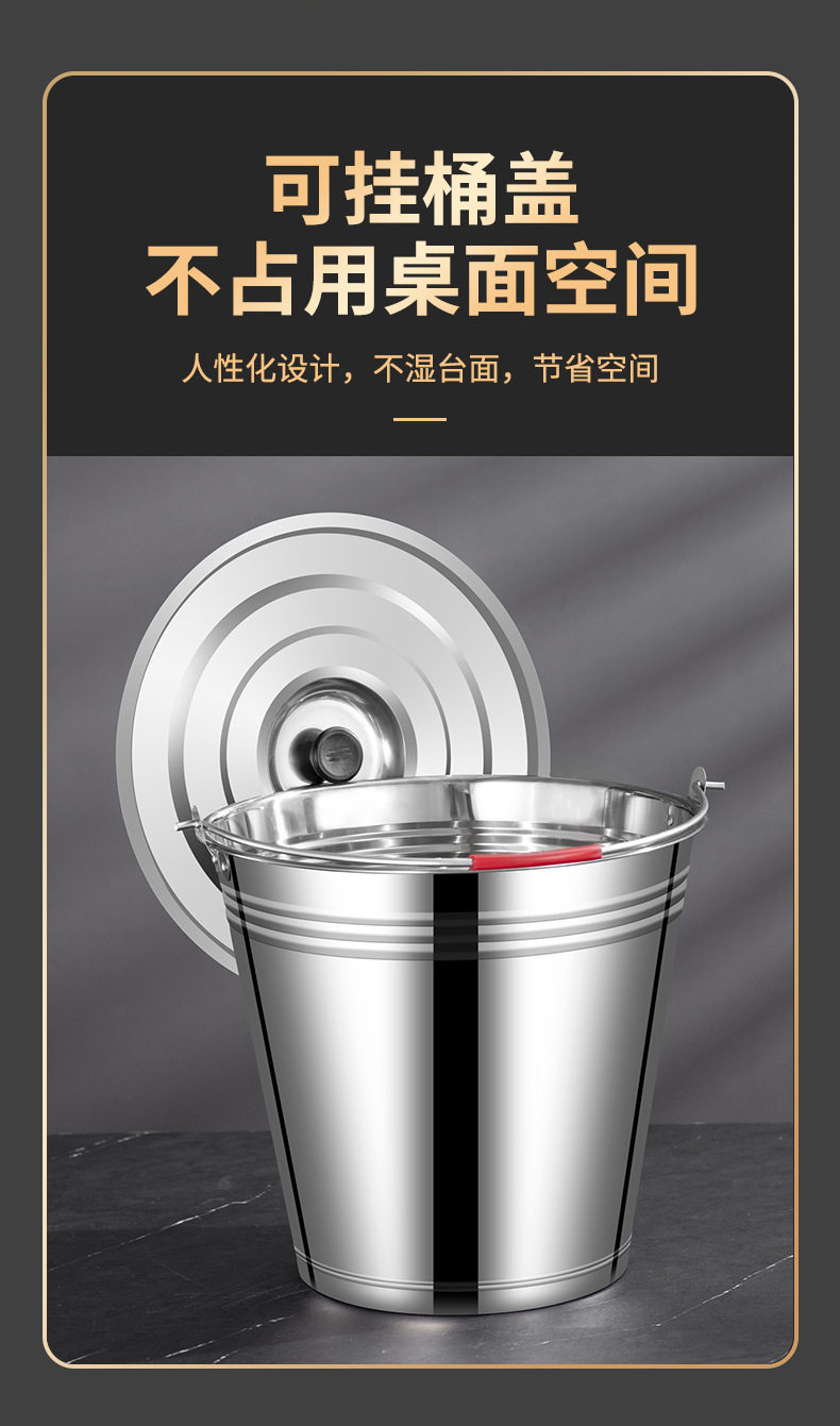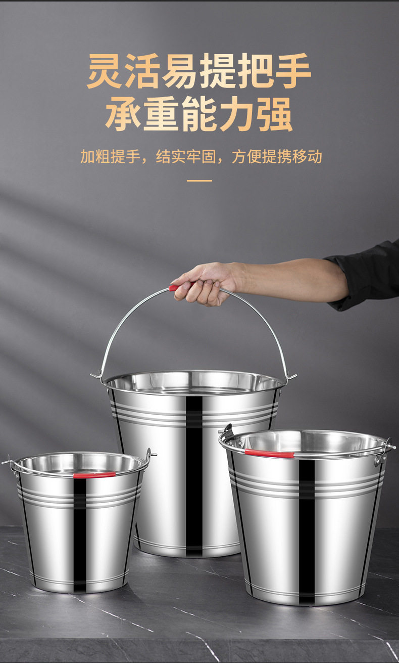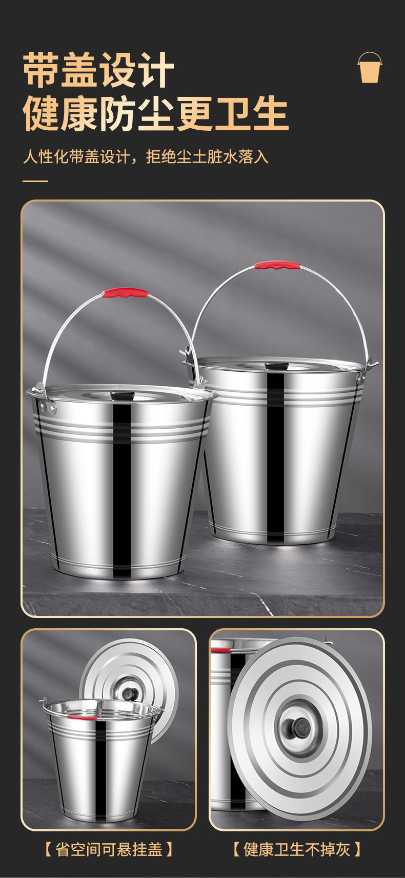 Stainless Steel Bucket Portable Ice Bucket Kindergarten Trash Can with Lid Oil Barrel Iron Barrel Home Kitchen Canteen Ginger Tea