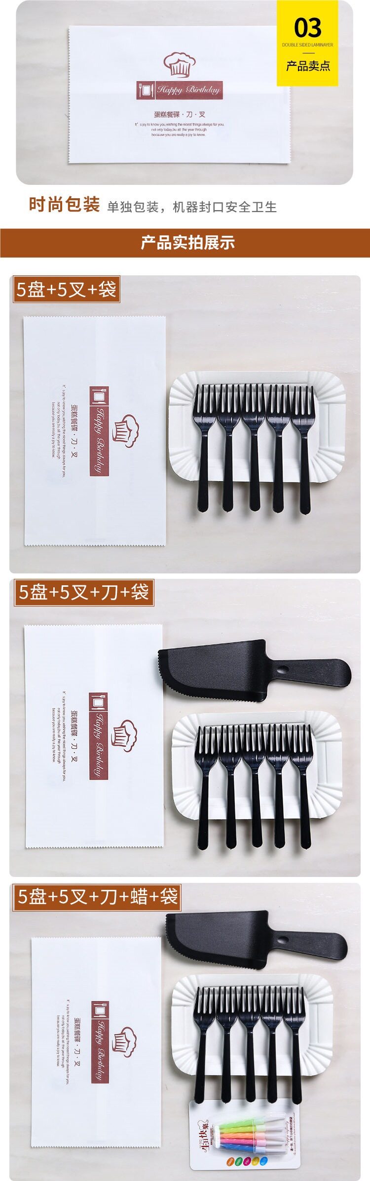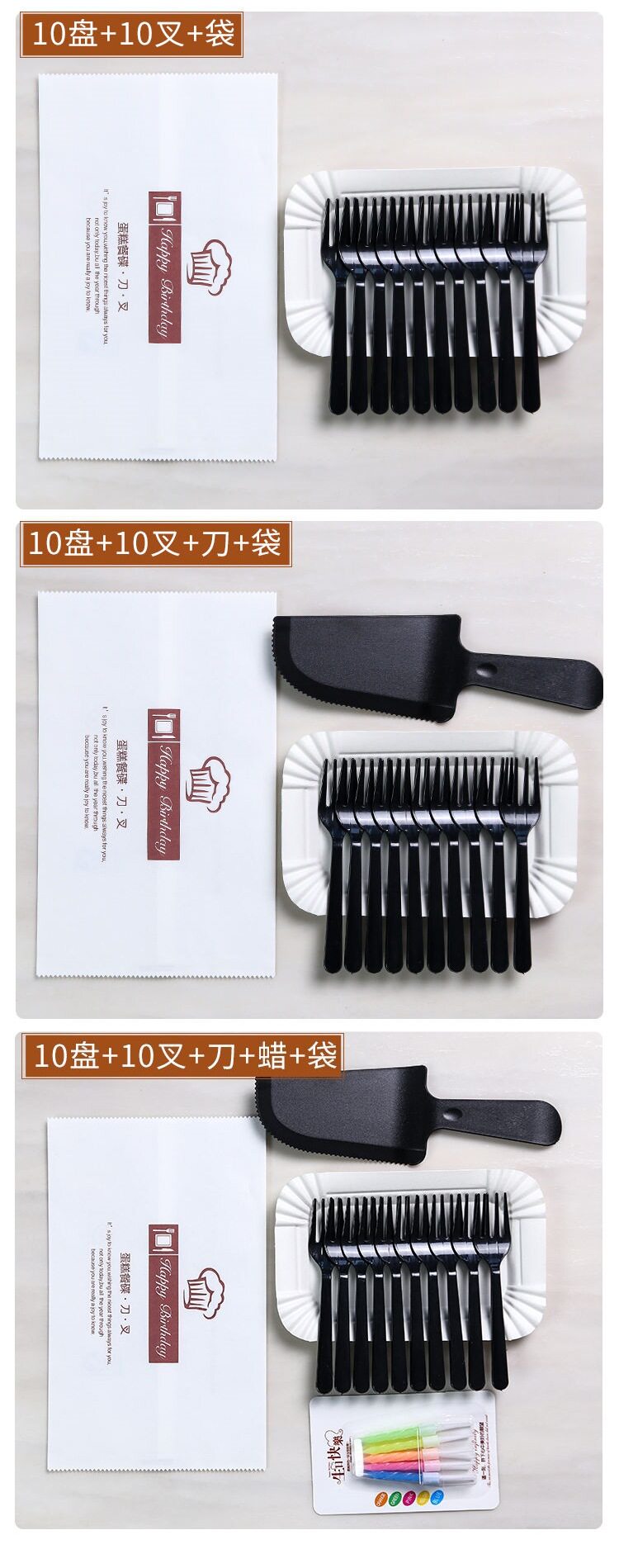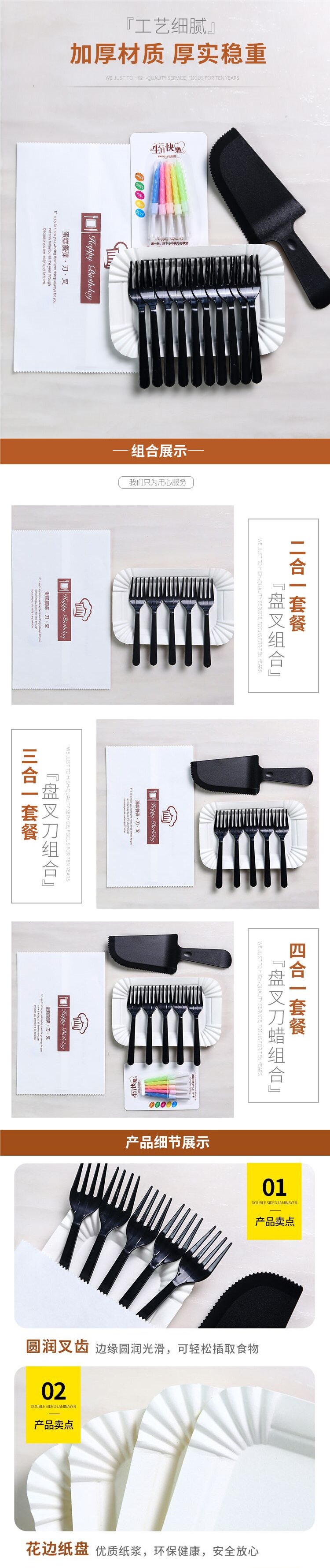 | Size | Black chopper 5,Black four-pronged 5-plate 5-pronged + paper bag 100 sets,Black four-pronged 5-plate 5-pronged + knife + paper bag 100 sets,Black four-pronged 5-plate 5-pronged + knife wax + paper bag 100 sets,Black four-pronged 10 plates, 10 forks + paper bags, 100 sets,Black four-pronged 10 plates, 10 forks + knife + paper bag 100 sets,Black four-pronged 10 plates, 10 forks + knife wax 100 sets |