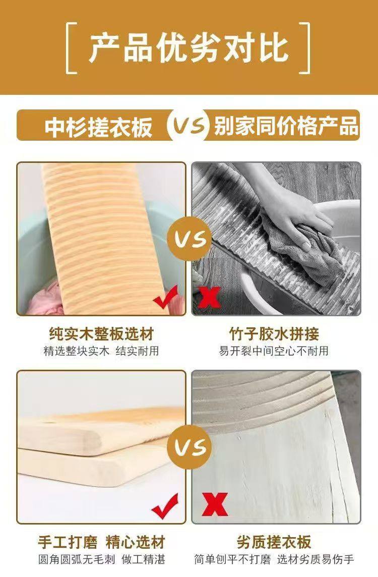 A Traditional Washboard for Home Use, Thickened for Hand Washing, Suitable for Dormitory Students, Made of Solid Wood, Non-Slip, Extended Length Q